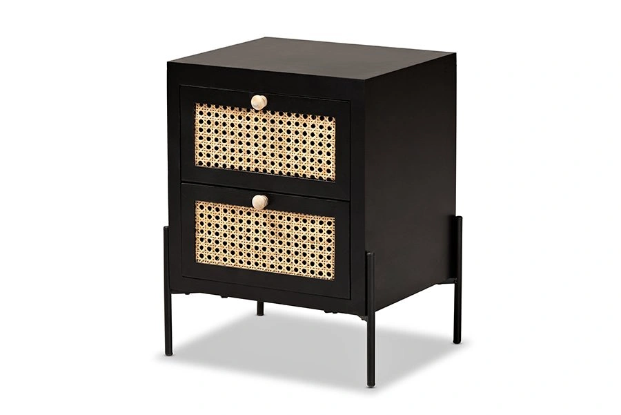 Rimba Nightstand - Natural Rattan and Black Wood - 2 Drawers