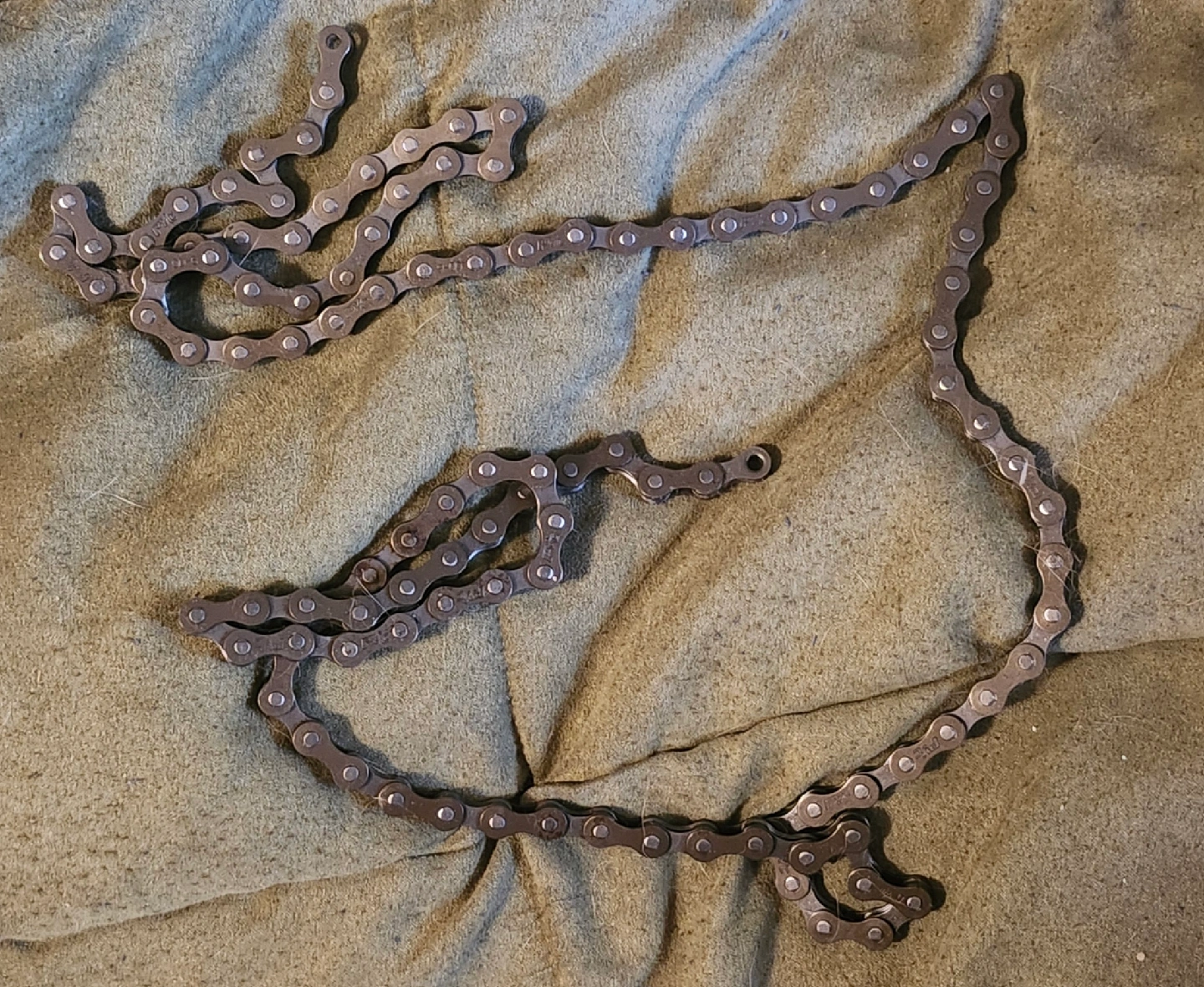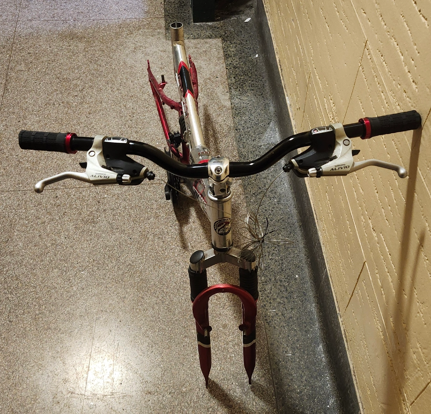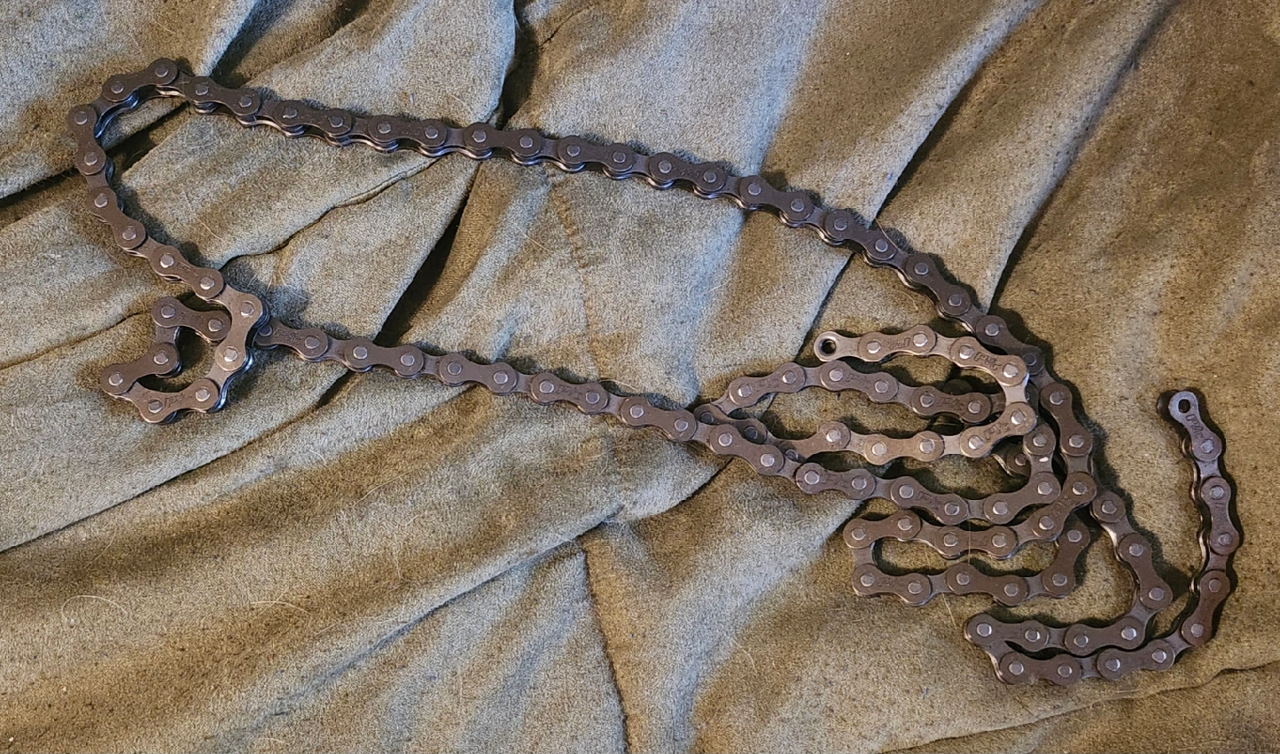 The size of the rims for this bike are 26". The front fork suspension is free moving and not frozen. I do not have the breakaway link for the chain. No other screws or parts are included. Only what is in the picture.