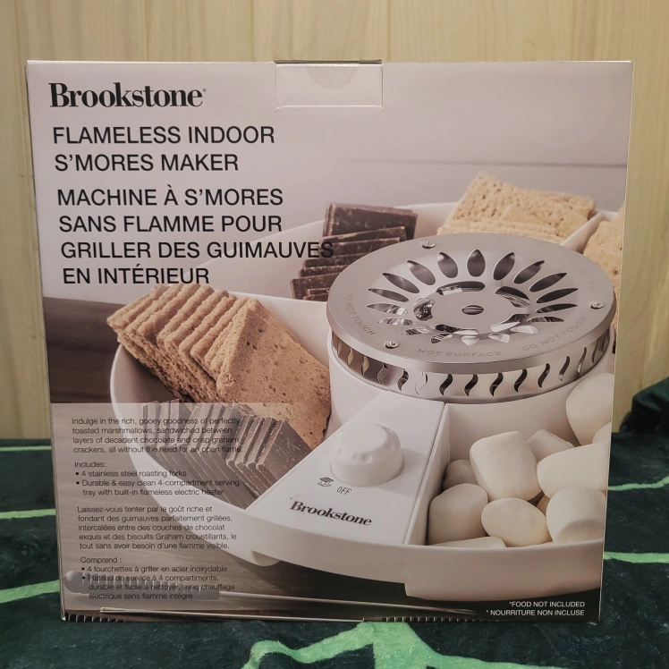 Enjoy the fun of s'mores indoors with this Brookstone flameless maker! It includes 4 stainless steel roasting forks and a durable, easy-clean 4-compartment serving tray with a built-in flameless electric heater