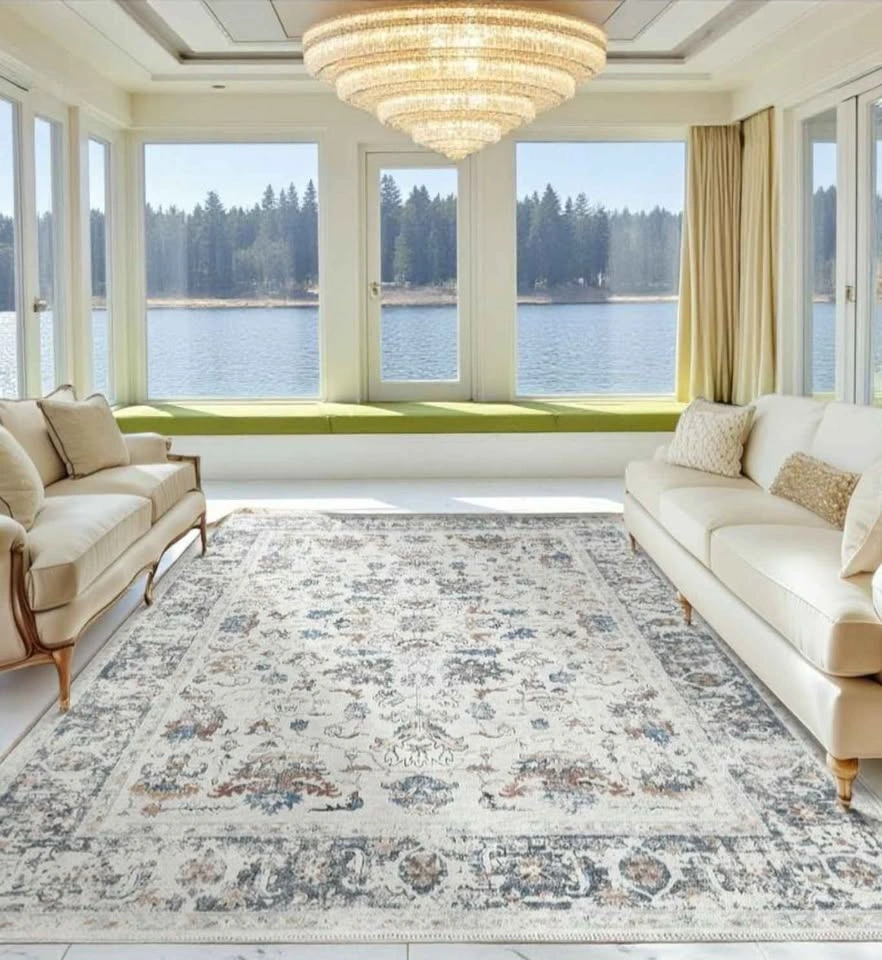 7x5 ft CREAM/ BLUE VINTAGE RUG — BRAND NEW, SEALED