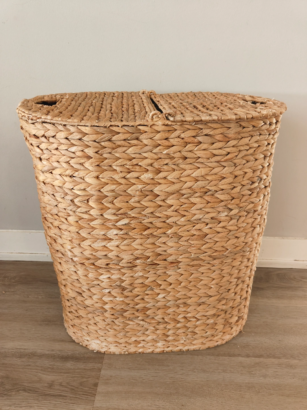 Selling a lovely woven hamper It has a convenient lid to keep things tidy. Perfect for laundry, toys, or extra storage in any room of your home! It's in great condition and ready for a new home