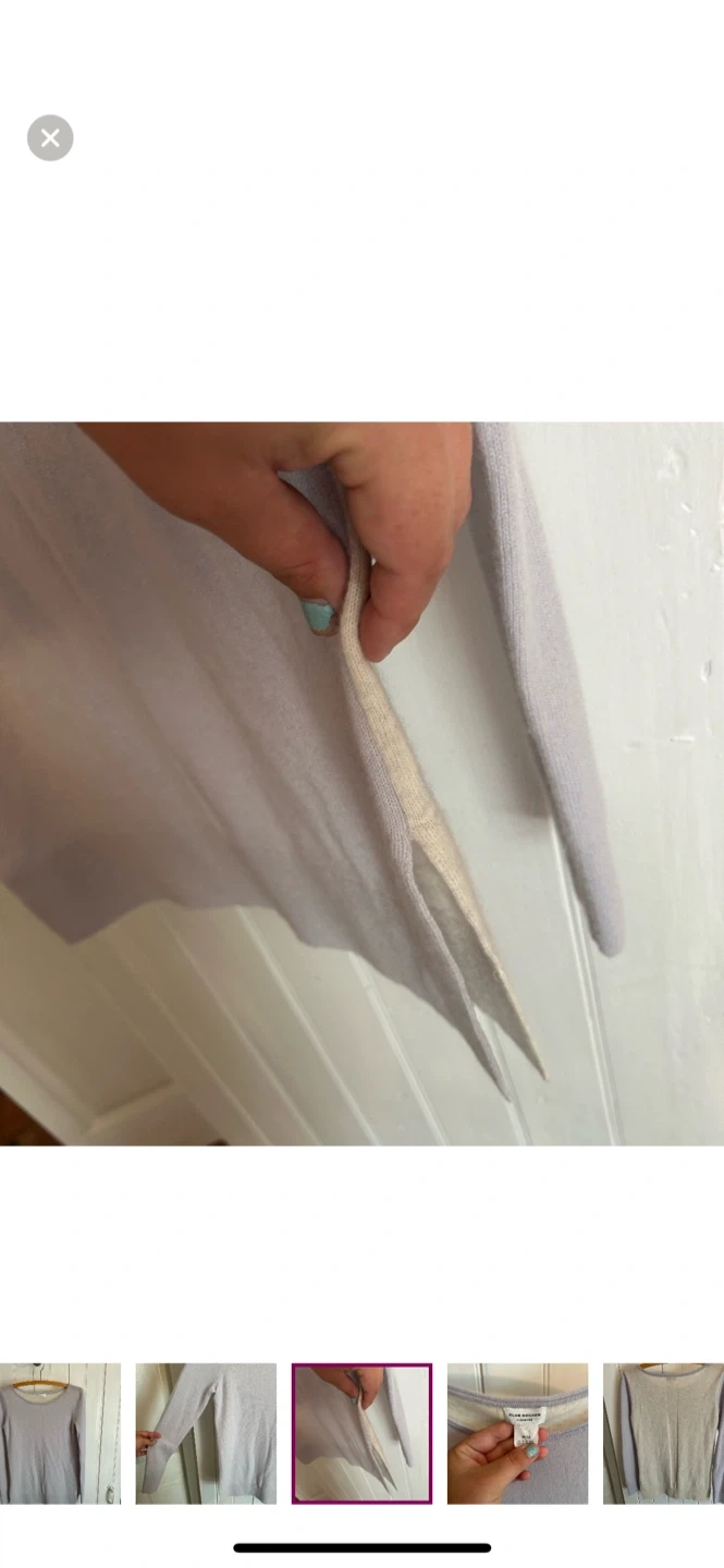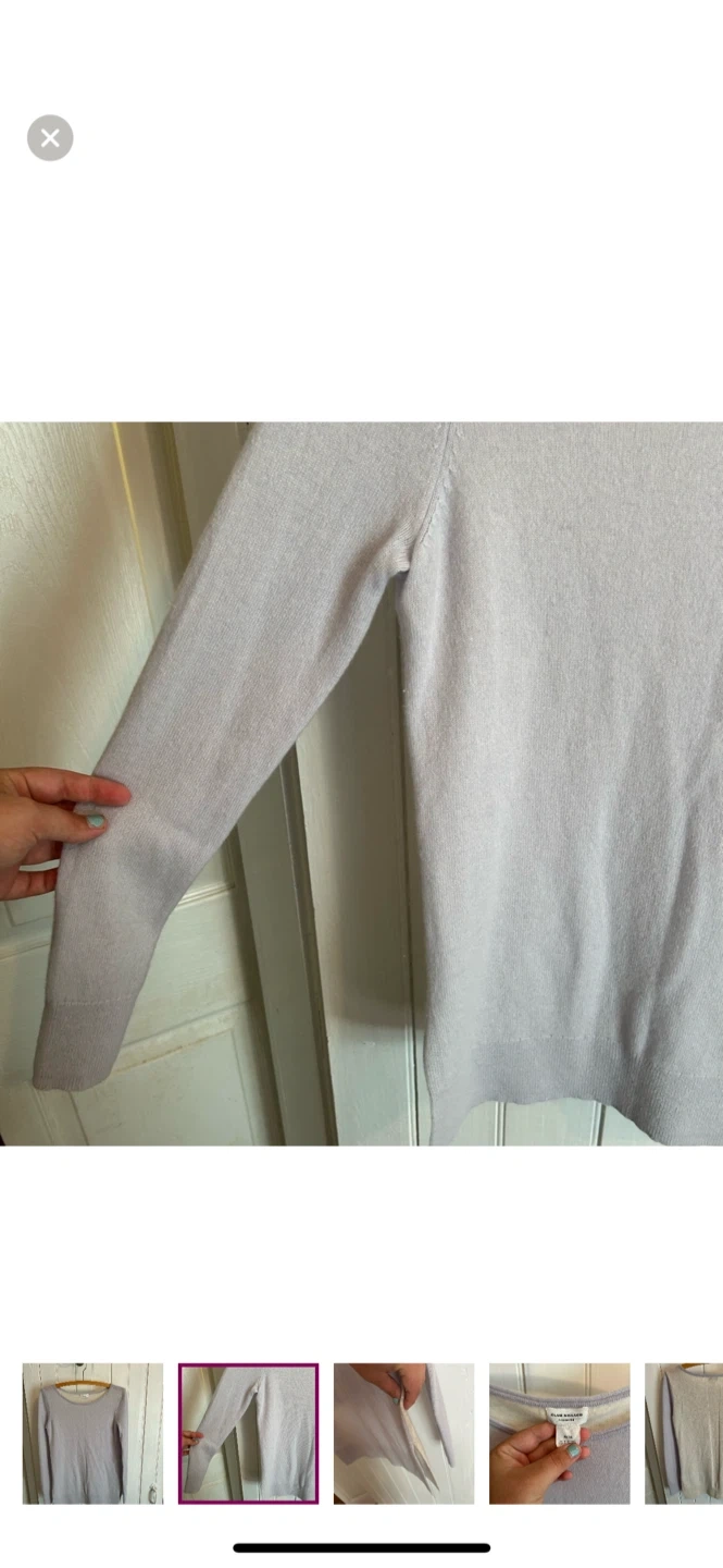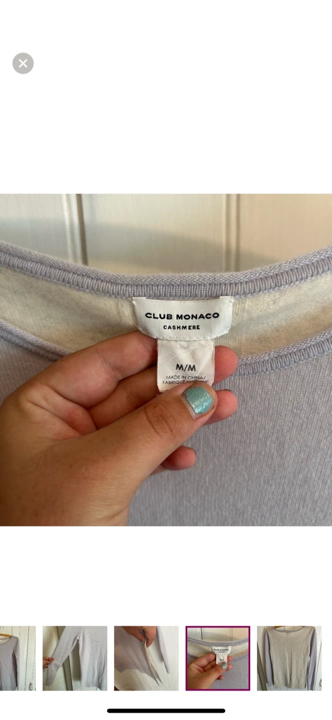 Club Monaco brand cashmere line. Super soft knit sweater with side cuts. Light blue with off white back. Size medium. Brand new condition