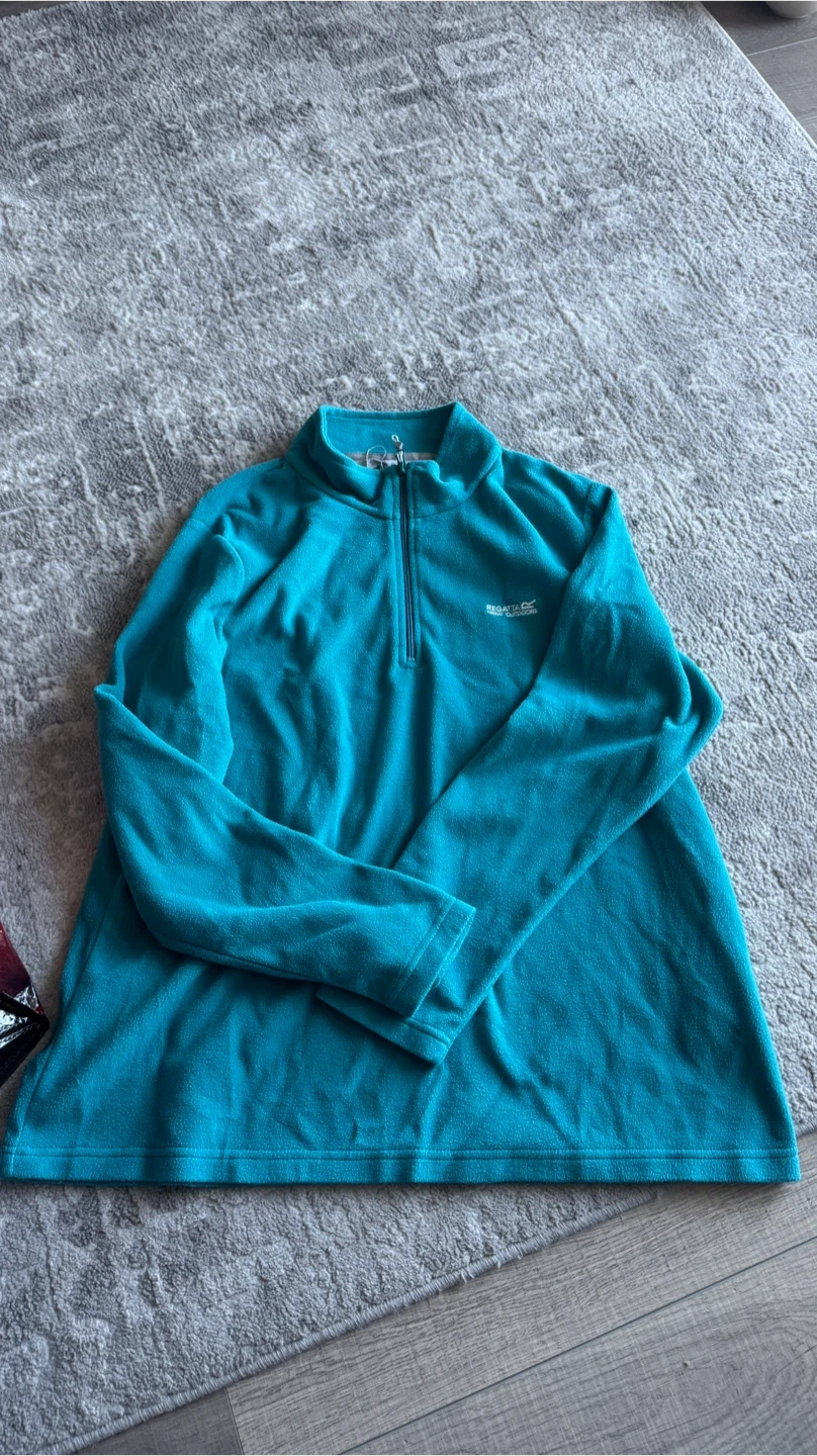 Cozy up with this Regatta Outdoors fleece pullover! It's a lovely teal colour, perfect for layering on those cooler days. This pullover is in great condition and ready for a new home