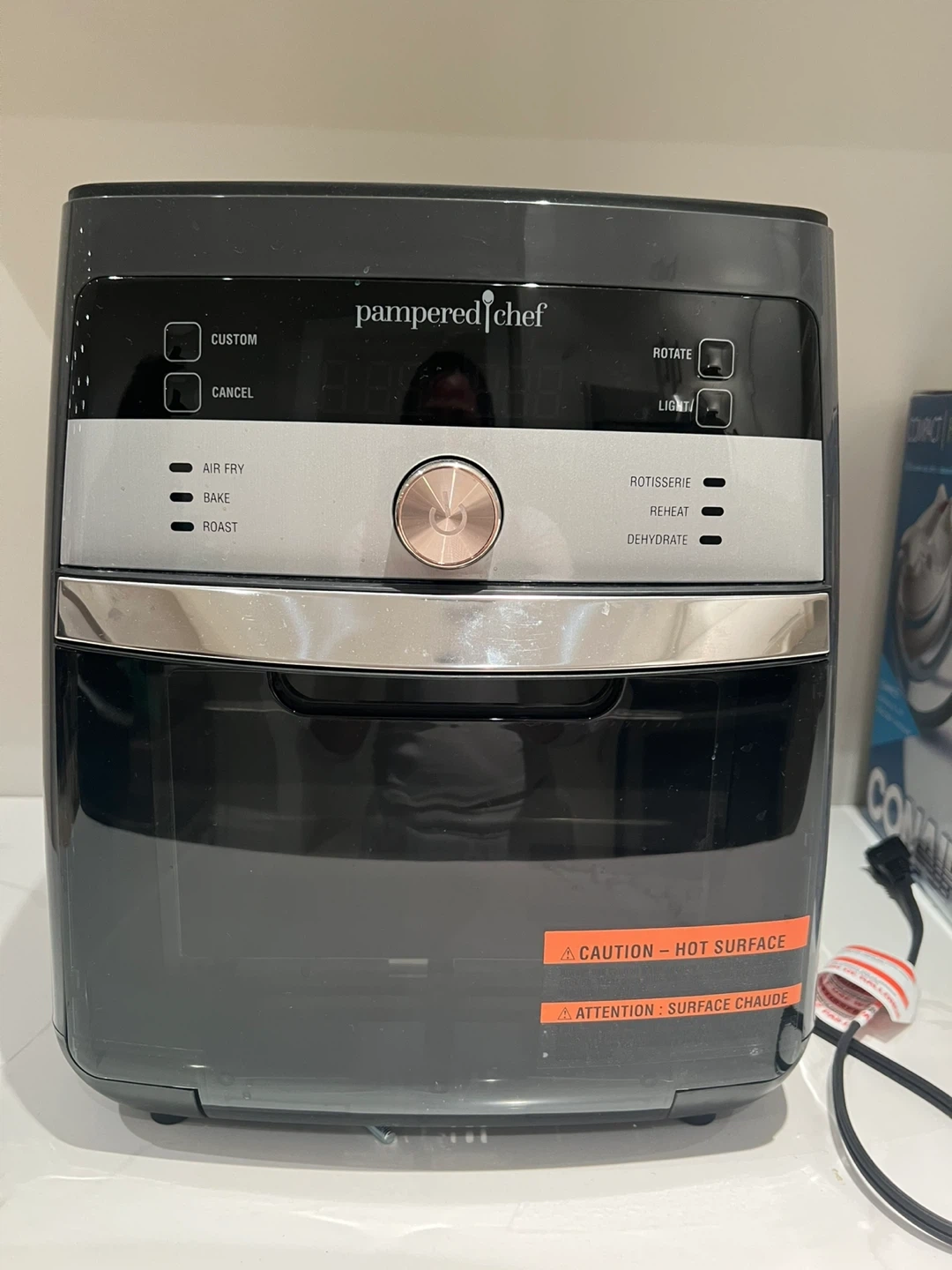 29Selling a Pampered Chef air fryer. It has custom settings for air frying, baking, and roasting. It also has rotisserie, reheat, and dehydrate functions.