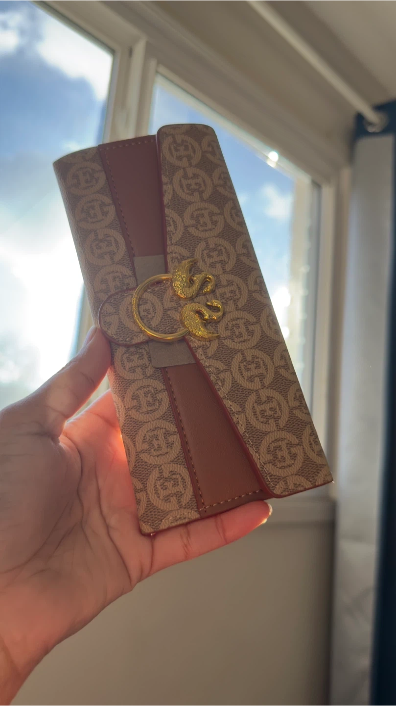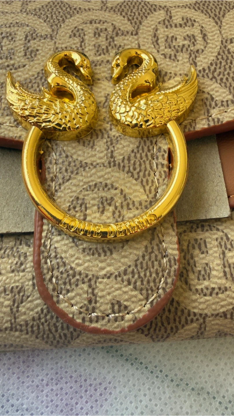 Selling a brown LOUÉ DENISE wallet. It’s in great condition and comes with a unique swan design on the clasp! Perfect for keeping your cards and cash organized.