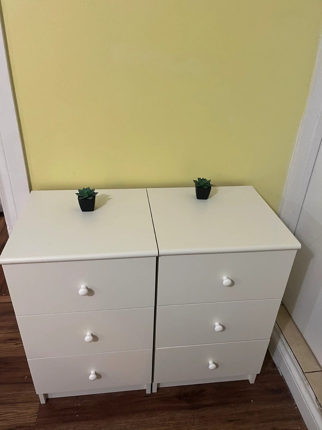 Selling a set of two matching IKEA white 3-drawer dressers! They're in great shape and ready for a new home. Perfect for adding some extra storage to your bedroom or any other space.