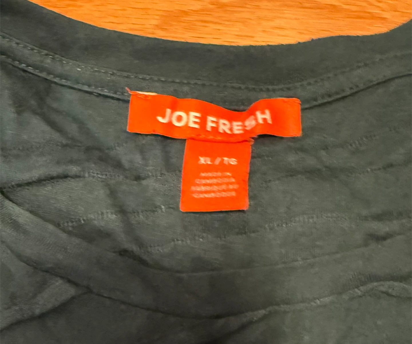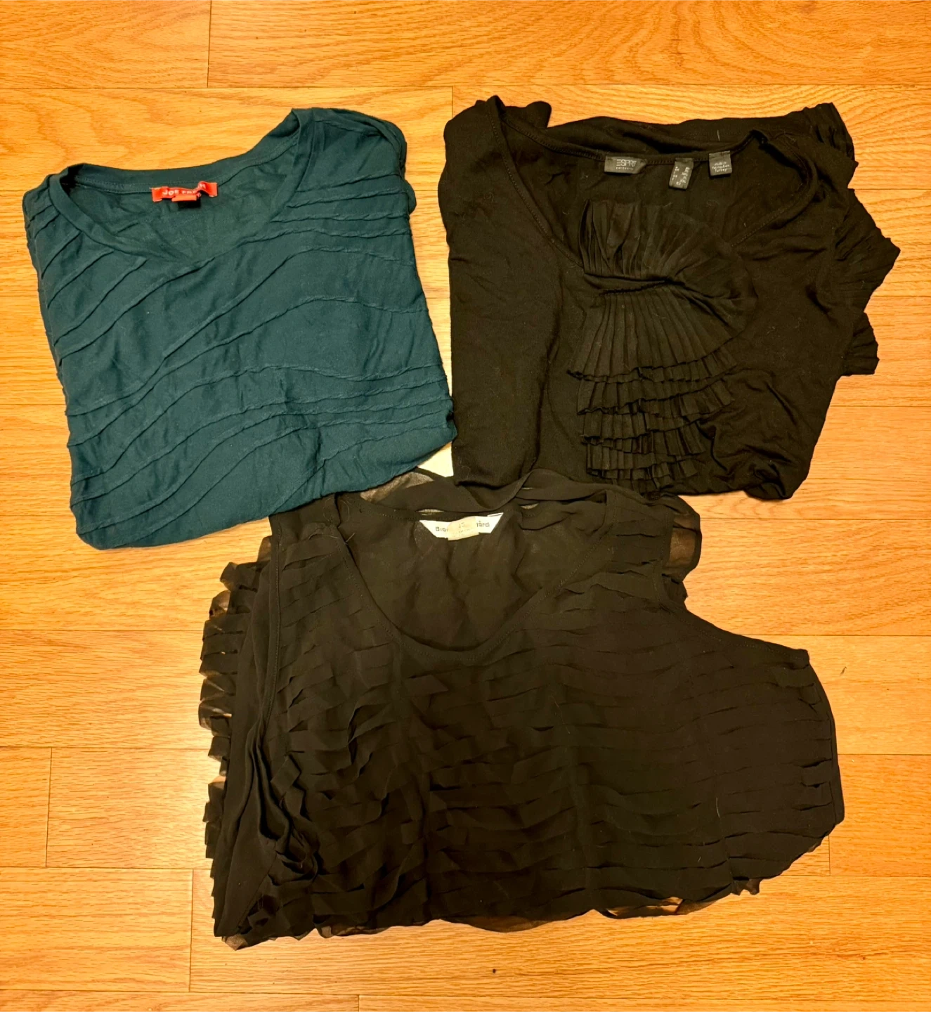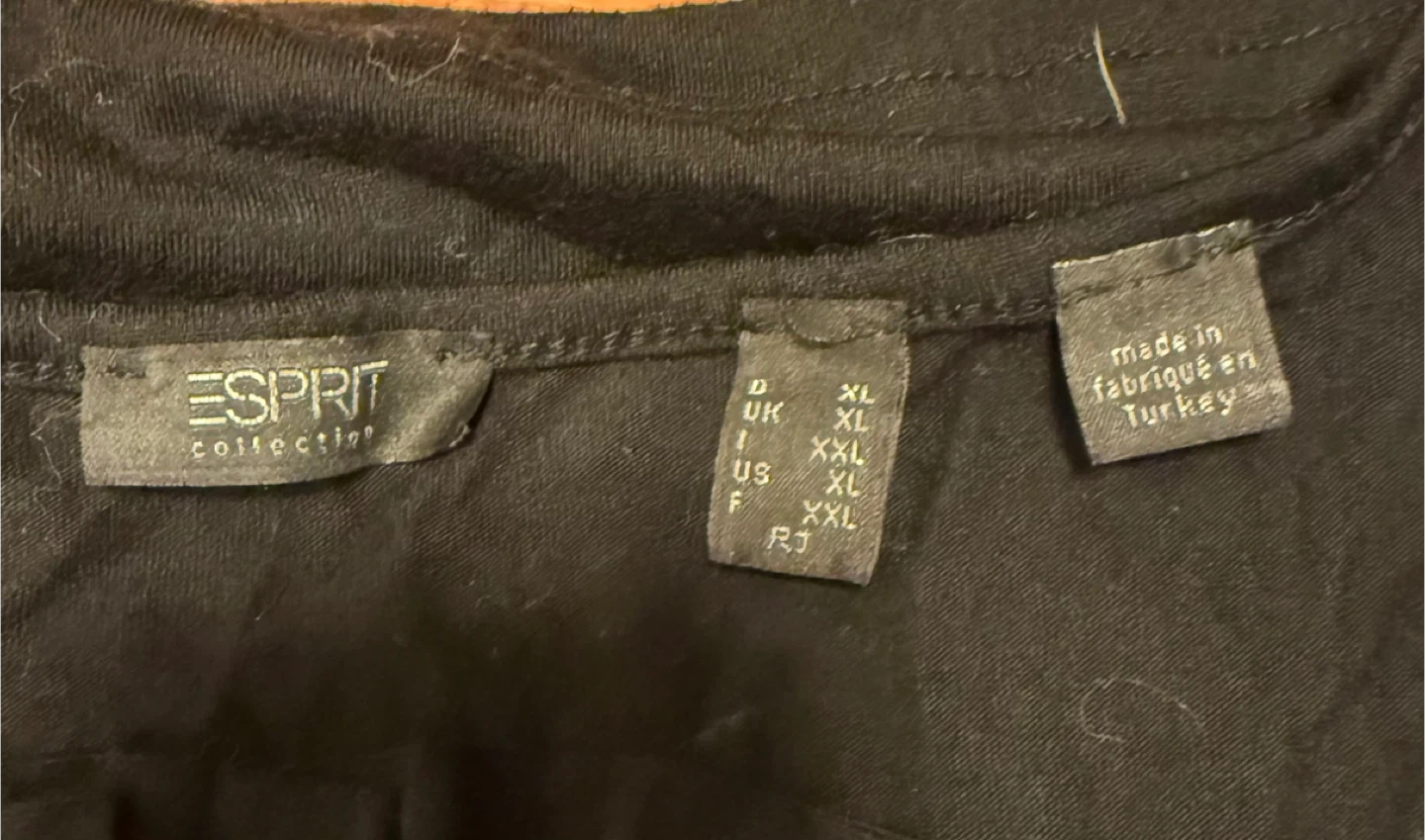 A mixed lot of women's tops including brands like Bianca nygard (size 12), Esprit (size XL/XXL), and Joe Fresh (size XL).