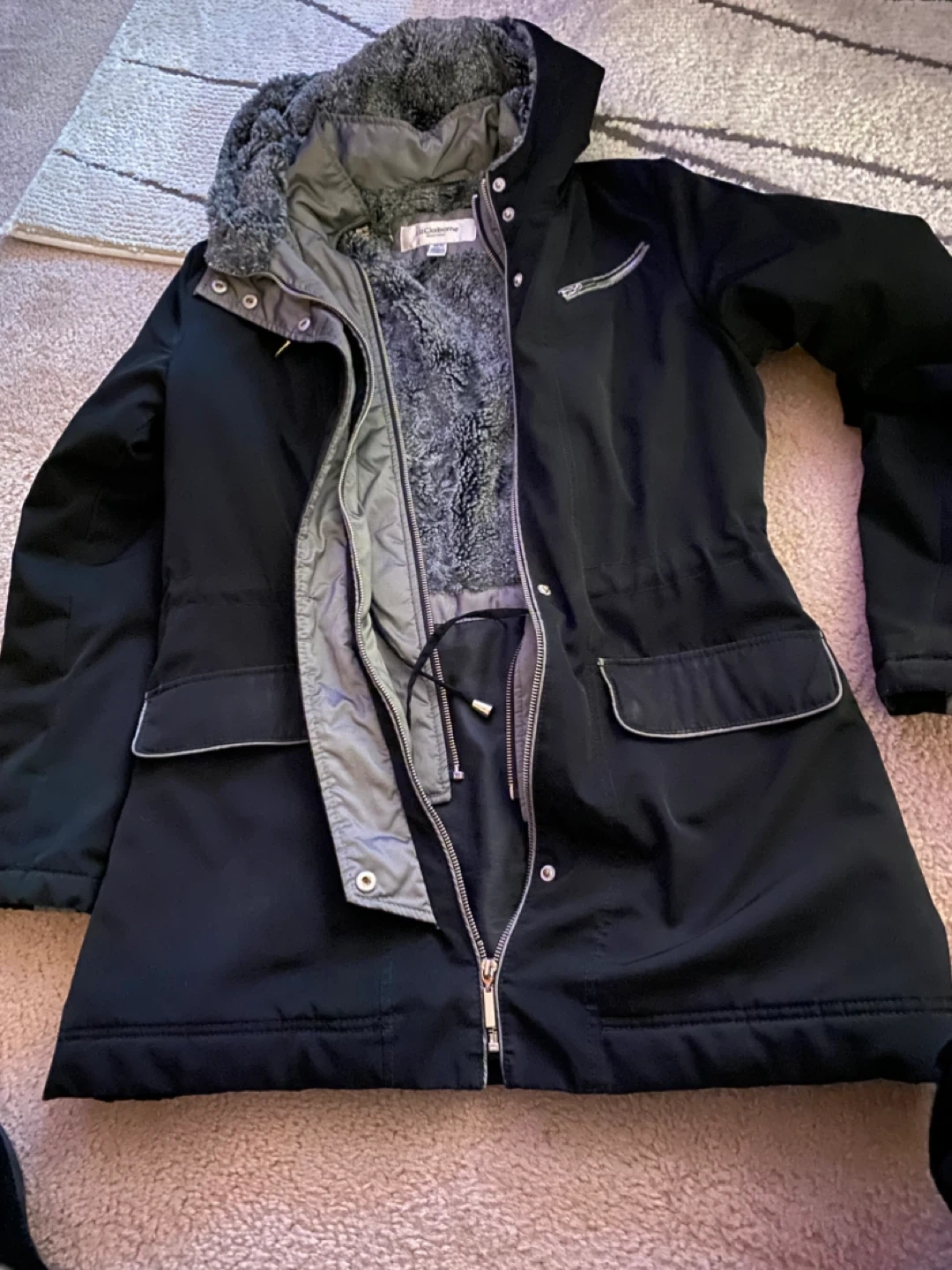 98A Liz Claiborne black winter coat with a faux fur lining. Perfect for those cold Canadian winters! The coat is in great condition and ready for a new home