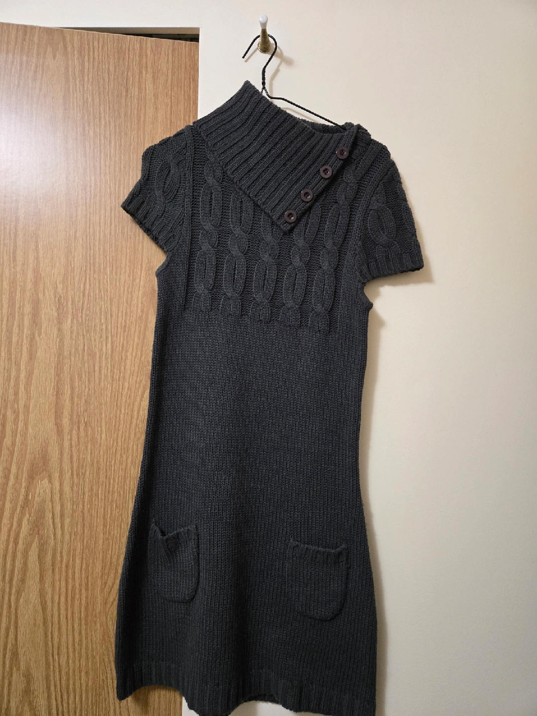 Cozy up in this lovely grey knit dress from UK2LA! It's a size large and made of 100% acrylic, perfect for staying warm and stylish. The unique collar and cute details make it a standout piece for any wardrobe