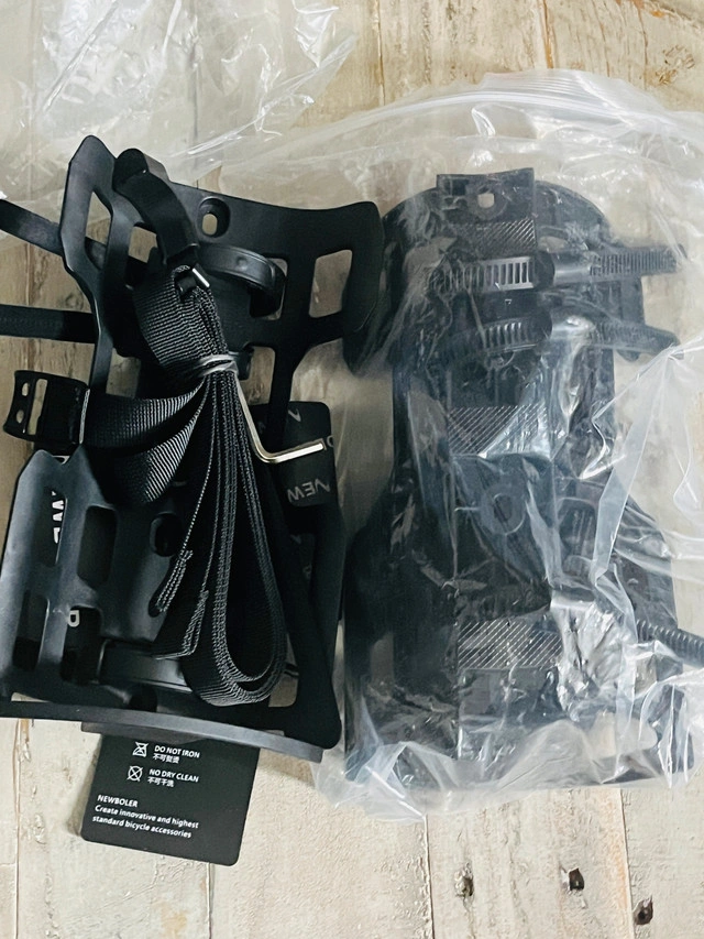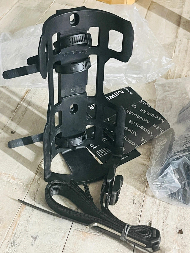 102This is a Newboler Bottle Cage Mount Adapter, a versatile accessory for securely attaching your water bottle cage to various parts of your bike. Here are the specifications: * **Material**: High-quality, durable plastic * **Compatibility**: Suitable for most standard bicycle frames * **Adjustability**: Features adjustable straps for a secure fit This bottle cage adapter is brand new and ready to make your rides more convenient. It’s designed to fit securely and keep your water bottle within easy reach. If the ad is still up, it's still available! We have 2 units in stock! Available for pick up in Brampton near Sheridan College at Blue Bonnet Drive.