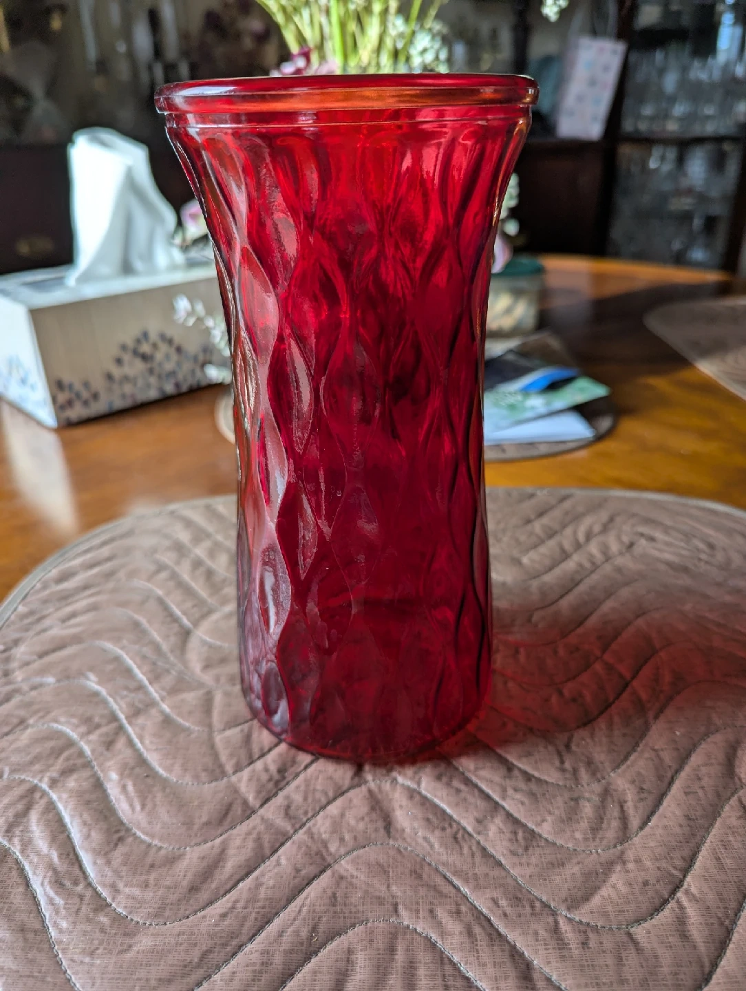 Like brand new red glass patterned vase. No dents or damages. From a smoke and pet free home. $10 cash or best offer. For pickup in SE near McKenzie Towne.