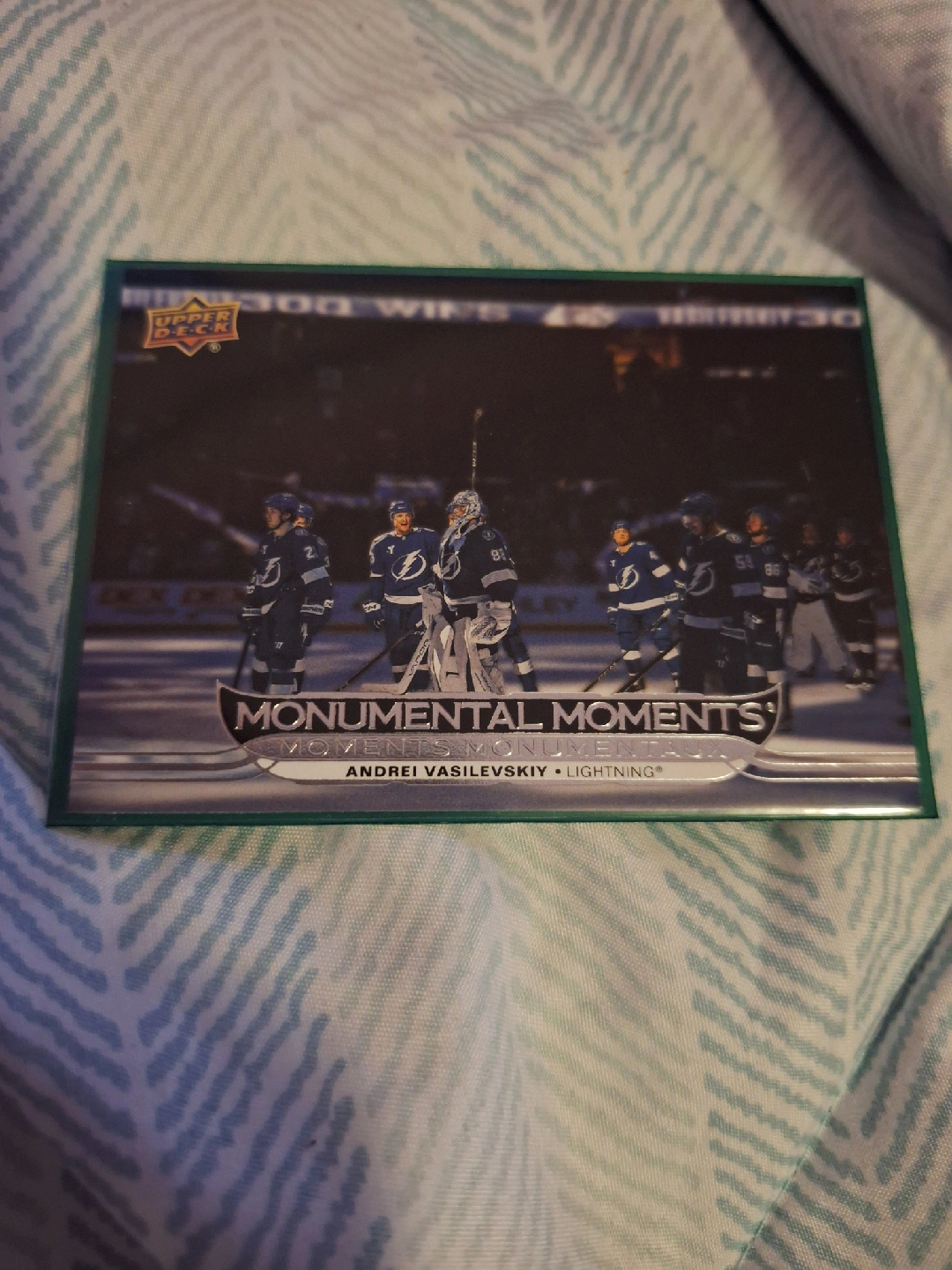 105Selling an Upper Deck hockey card featuring Andrei Vasilevskiy of the Lightning. It's from the Monumental Moments series. A great addition for any hockey card collector!