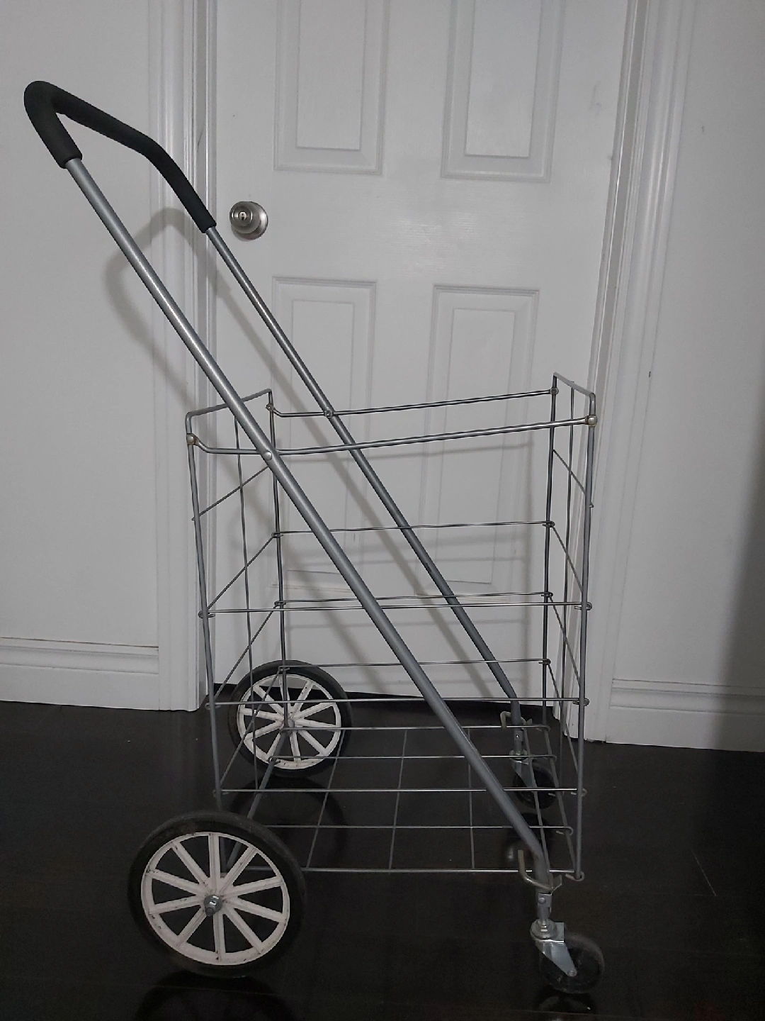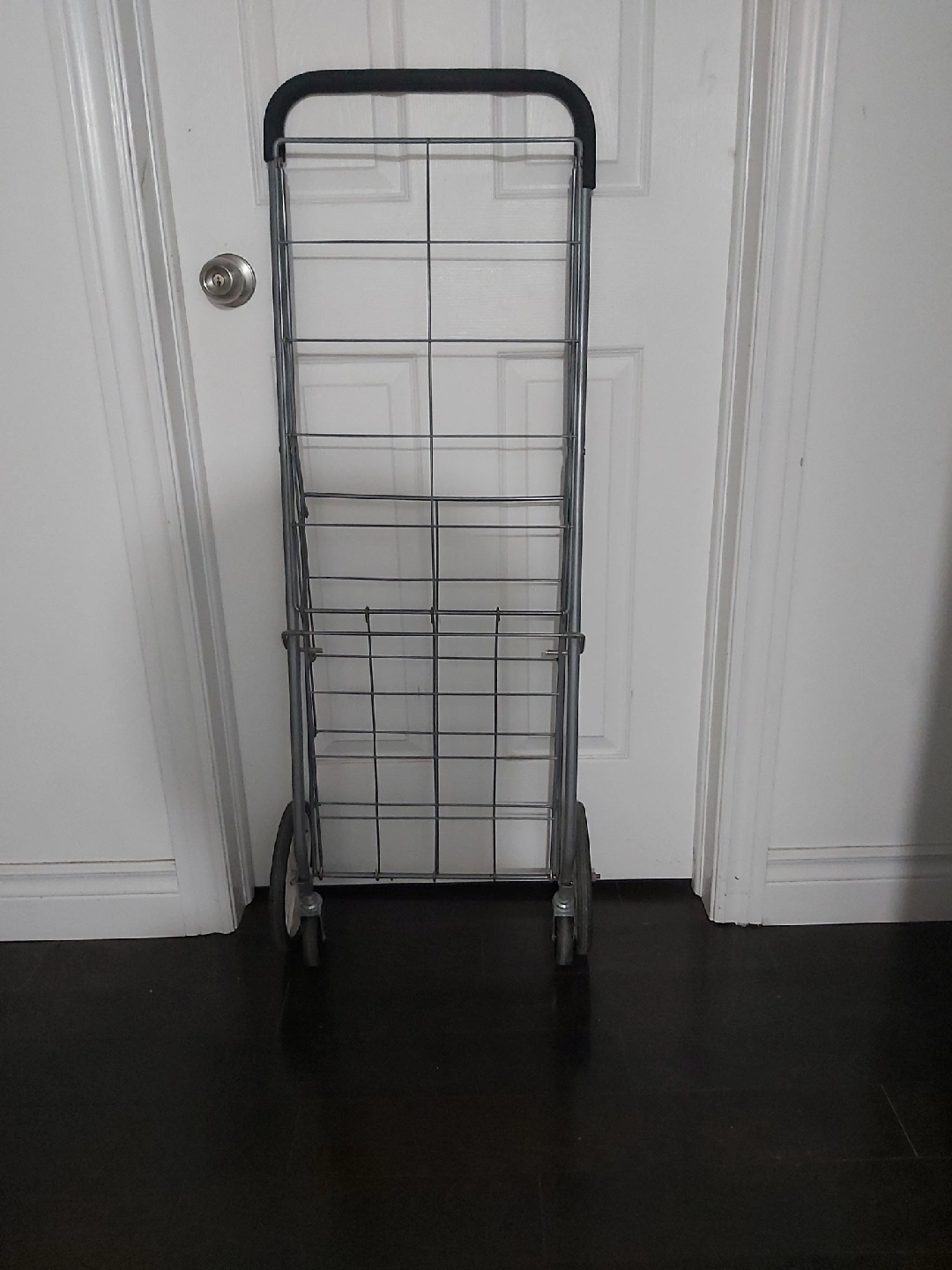 Selling a handy folding shopping cart! It's perfect for groceries, laundry, or anything else you need to haul around. Folds up for easy storage when not in use