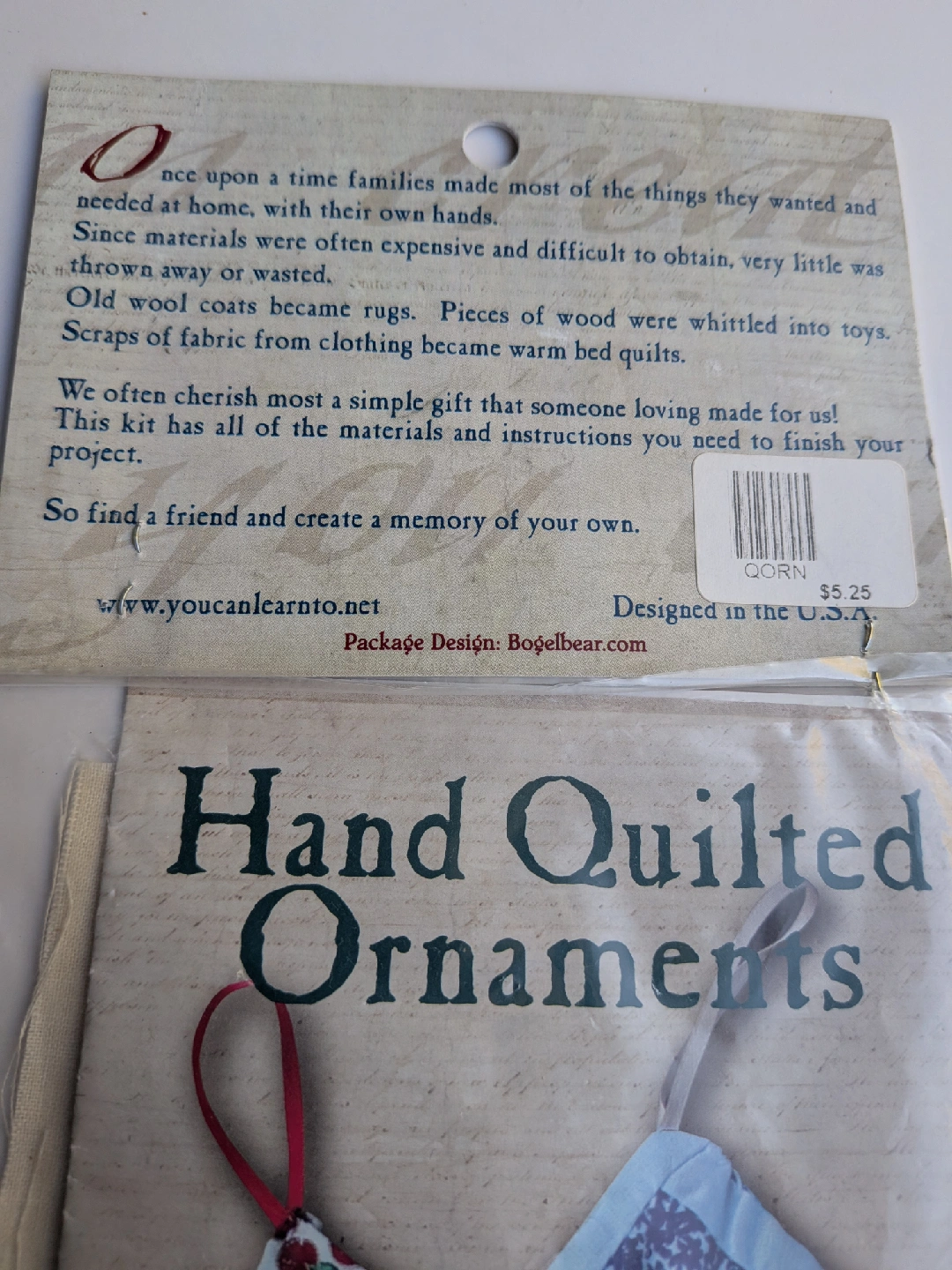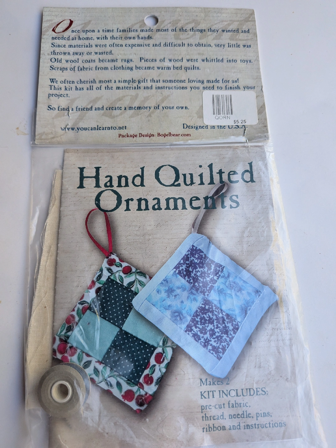 168Get crafty with this hand quilted ornaments kit! It makes two ornaments and includes pre-cut fabric, thread, needle, pins, ribbon, and instructions. So find a friend and create a memory of your own! Cash only, no etransfers Location: Etobicoke. Rathburn Rd and Renforth dr. Etobicoke Olympium nearby