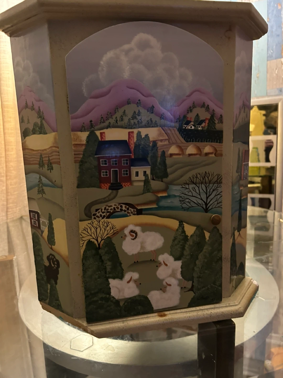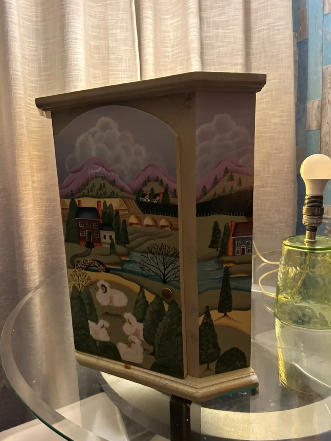 149Selling a charming painted wooden box featuring a lovely landscape design. It's perfect for adding a touch of rustic charm to any room. The box is in good condition and ready to find a new home!