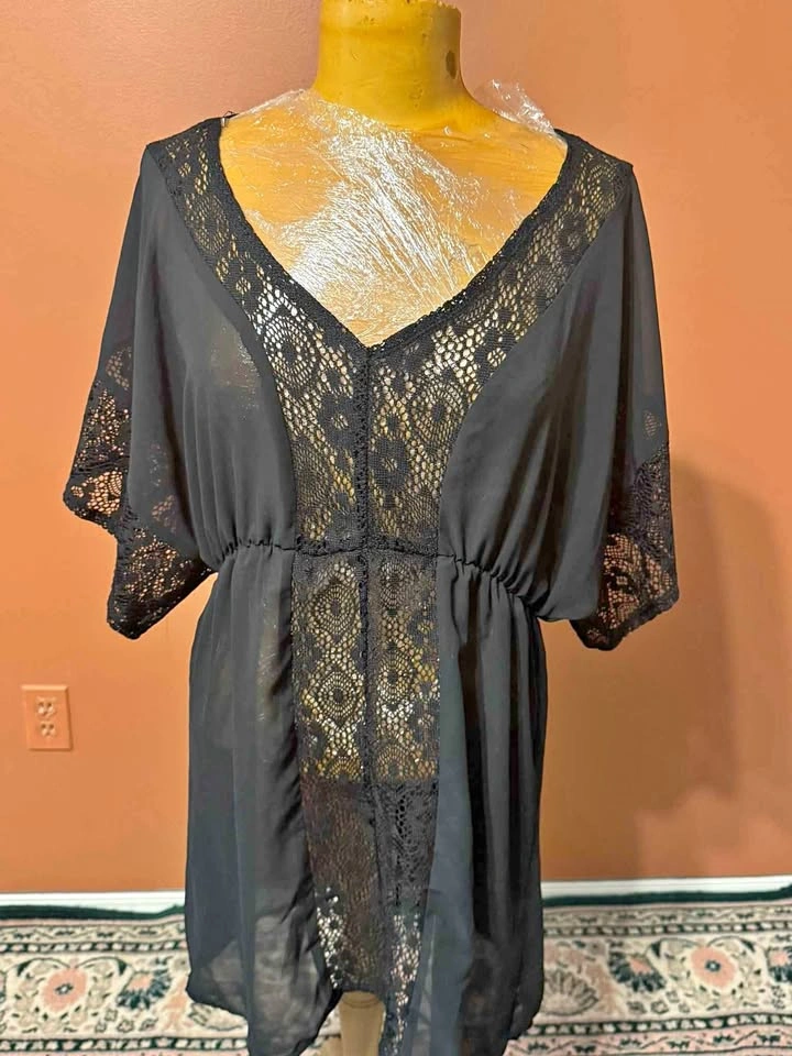 π Brand New Size L β Sheer Black Cover-Up with Lace Detail π€β¨