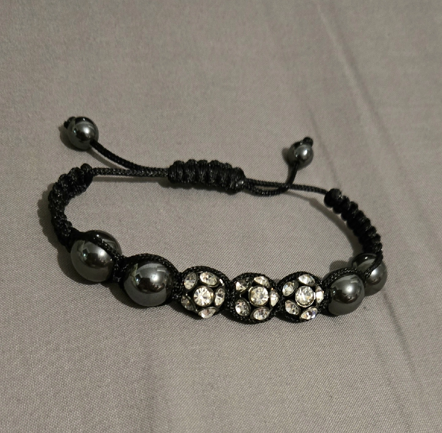 161Selling a cute black and silver beaded bracelet! It features alternating black beads and silver decorative beads with rhinestones. It's brand new.