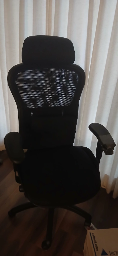 85Selling a comfortable black ergonomic office chair. It's in good condition and ready for a new home office setup! The chair has a mesh back for breathability and adjustable armrests for added comfort. only thing is that happened many years ago just one of the chair arms ripped apart had to cover it with tape. Everything else is fully functional.