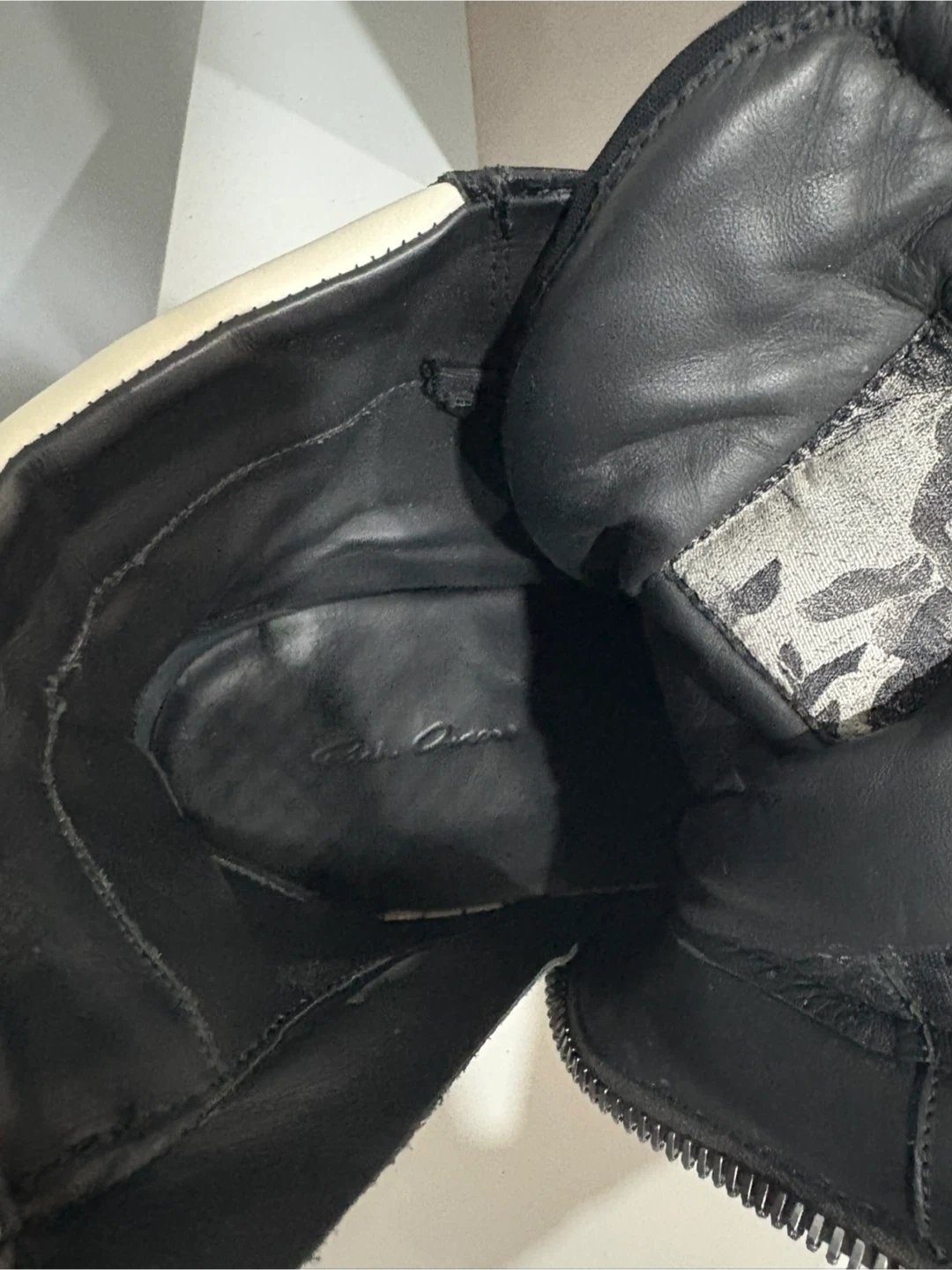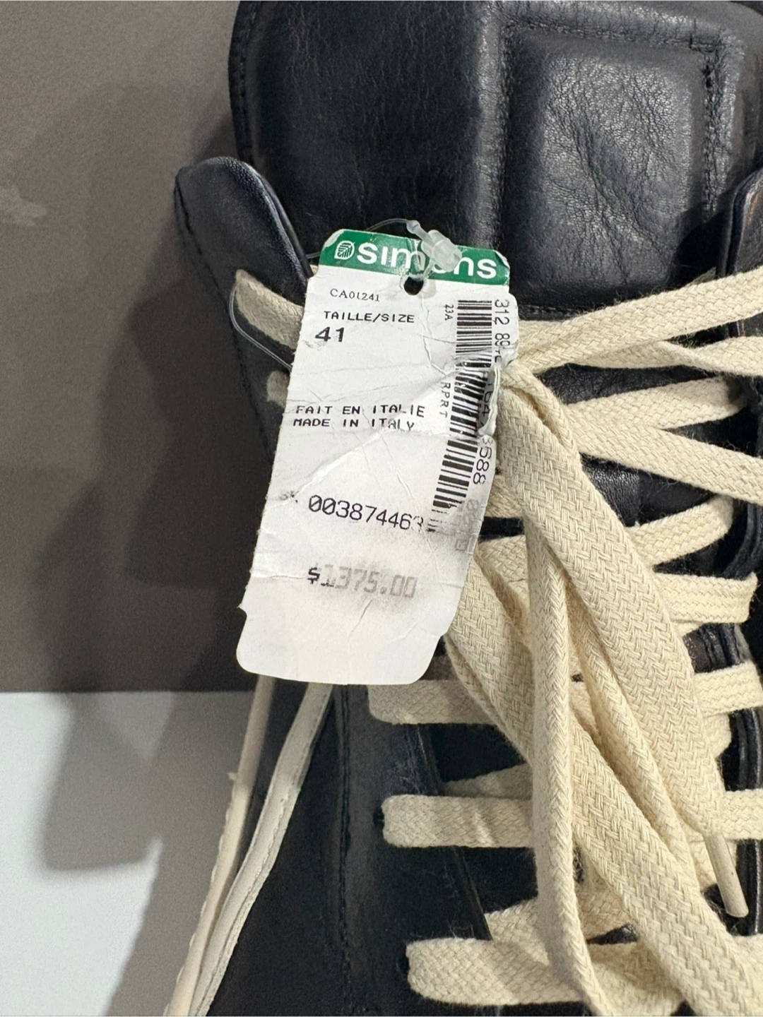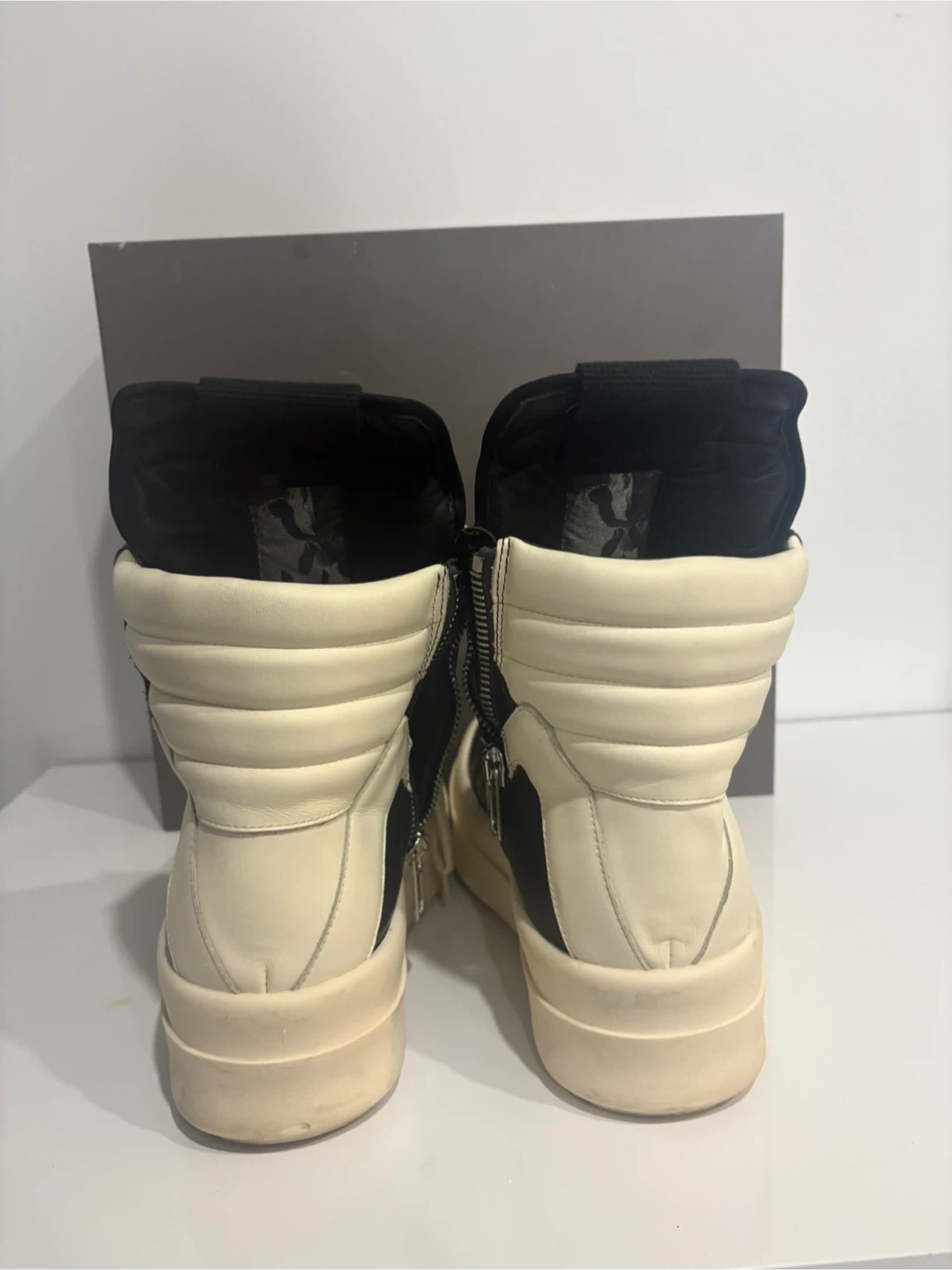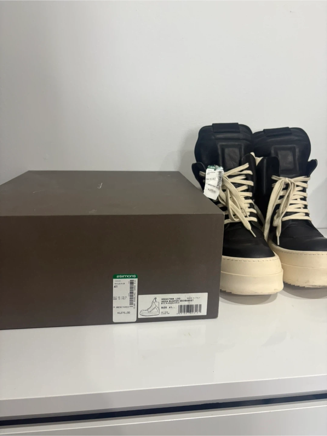 Selling a pair of Rick Owens Geobasket sneakers, worn about twice, they have tiny scuffs and need a good clean but besides that basically brand new. They are a size 41. Originally bought for $1375 from Simon’s in Edmonton Alberta. Comes with the box!