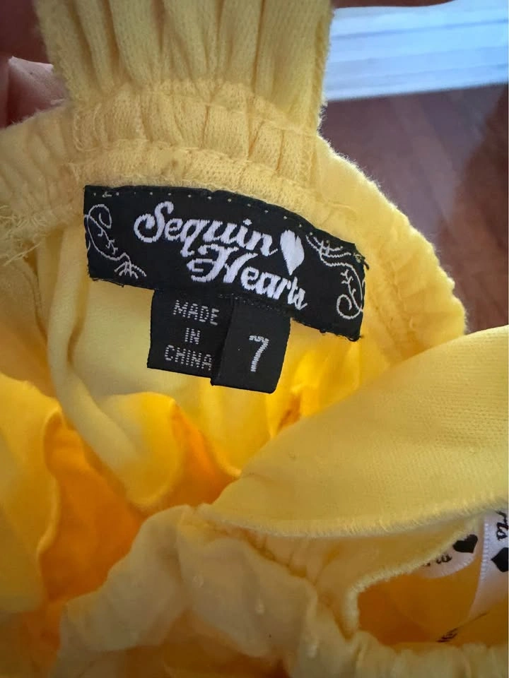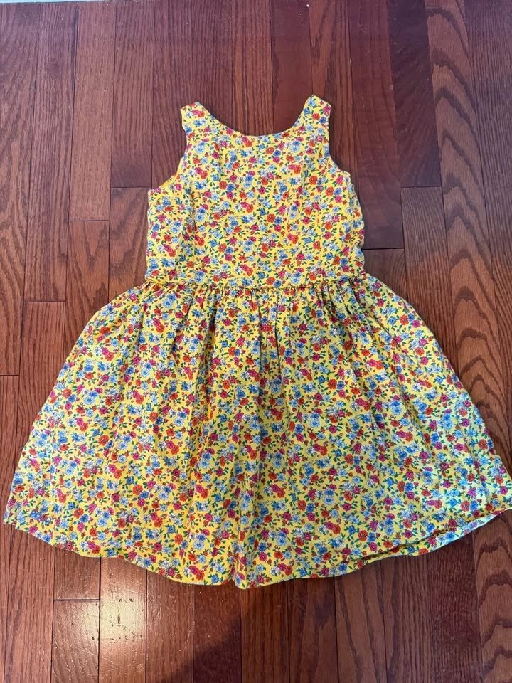 75Girls dresses size 7. Yellow dress with flower $5. Polo Dress $15
