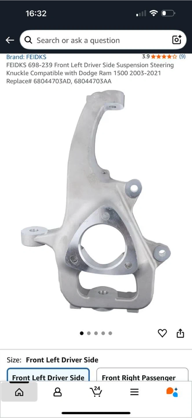 FEIDKS Front Left Steering Knuckle for Dodge Ram 1500 2003β2021 π (Driver Side, Suspension/Steering Component)