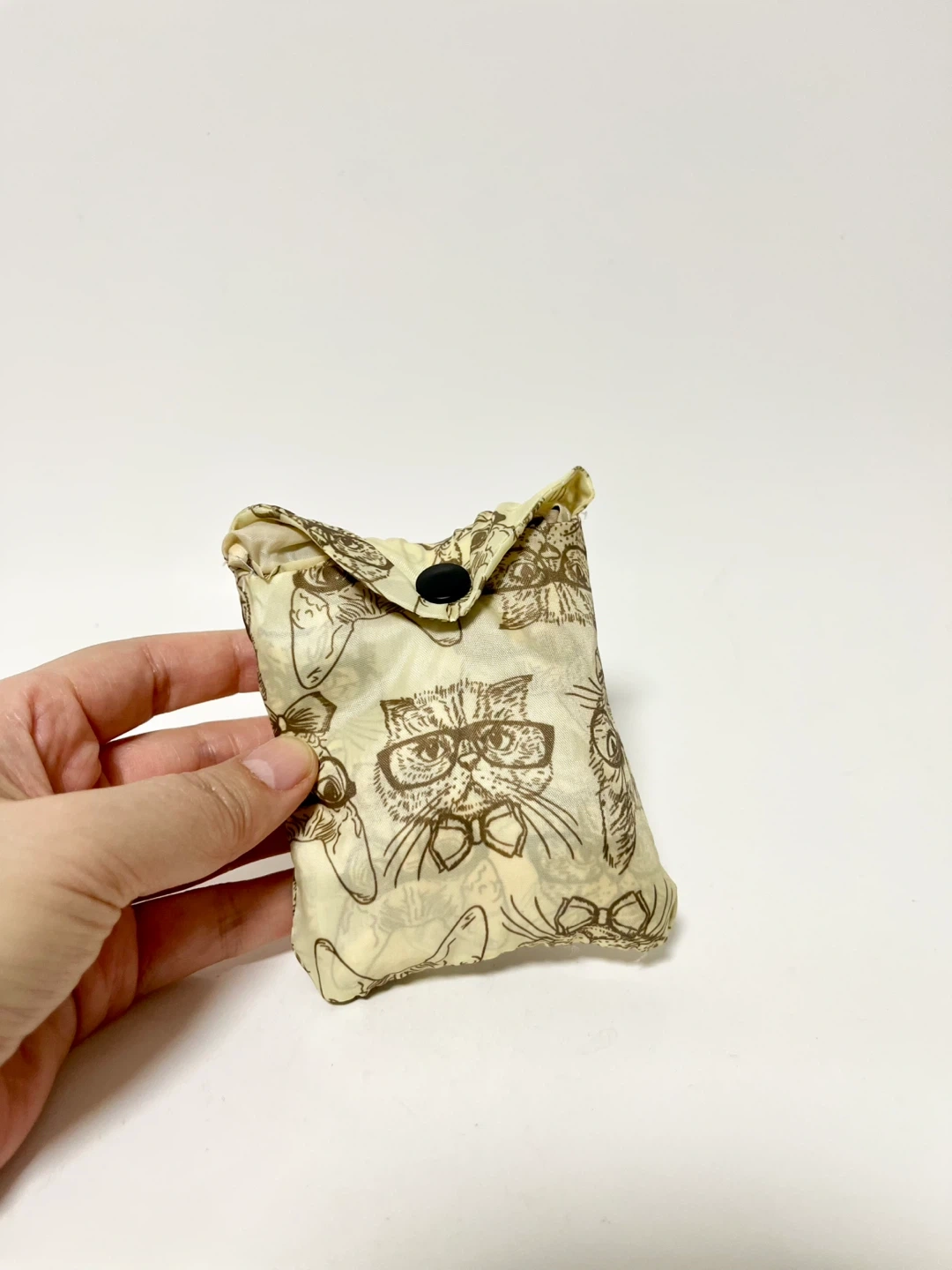 This is a foldable reusable shopping bag with a cute cat pattern! It's lightweight and portable, perfect for groceries or errands. It folds up small for easy storage when not in use