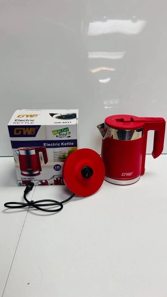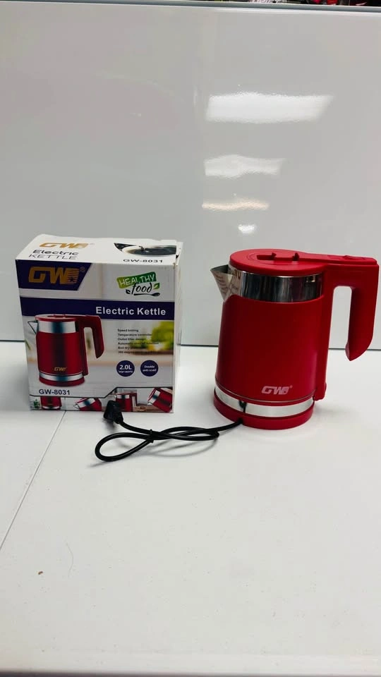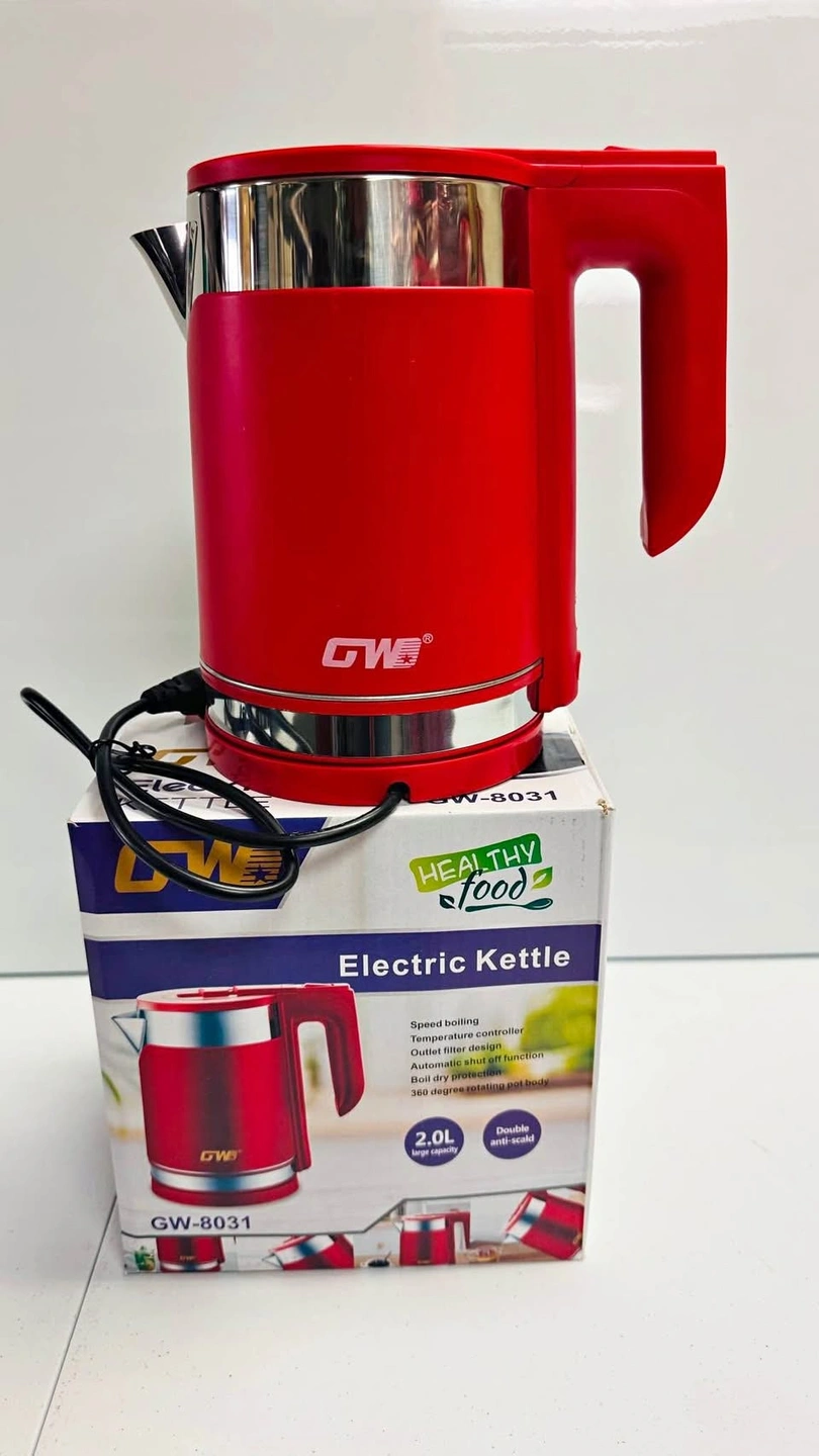 132Make your tea, coffee, or any hot drink quickly and safely with the GW Electric Kettle (GW-8031). Designed with a 2.0-liter large capacity and rapid boiling technology, this kettle brings water to a boil in just a few minutes. Its double anti-scald body keeps it cool to the touch, while the automatic shut-off function ensures maximum safety. Key Features: ⚡ Fast Boiling – Heats water quickly and efficiently 🌡️ Temperature Controller – Maintains ideal heating levels 🧩 Outlet Filter Design – Keeps water clean and pure 🔒 Boil-Dry Protection – Prevents damage when water runs out 🔁 360° Rotating Base – Easy to lift and place from any angle 💧 2.0L Large Capacity – Perfect for home or office use 🛡️ Double Anti-Scald Design – Safe and comfortable to handle A perfect combination of style, speed, and safety — ideal for home kitchens, offices, or tea lovers everywhere!