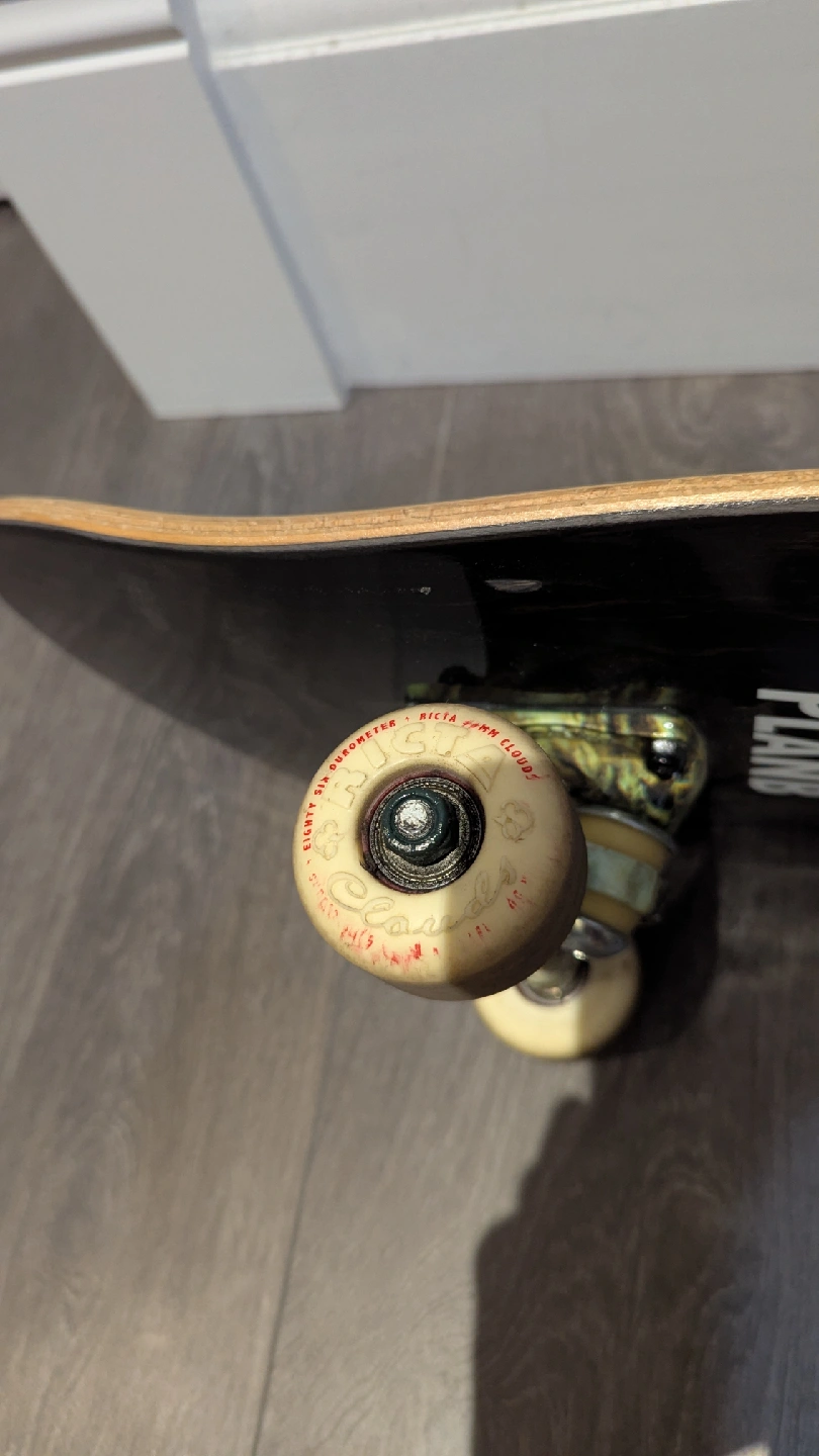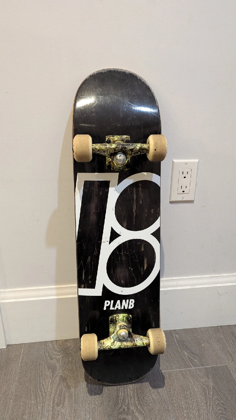 65Selling a used Plan B skateboard. It has a little wear and tear, but it's still in good condition for riding. The wheels are Ricta Clouds.