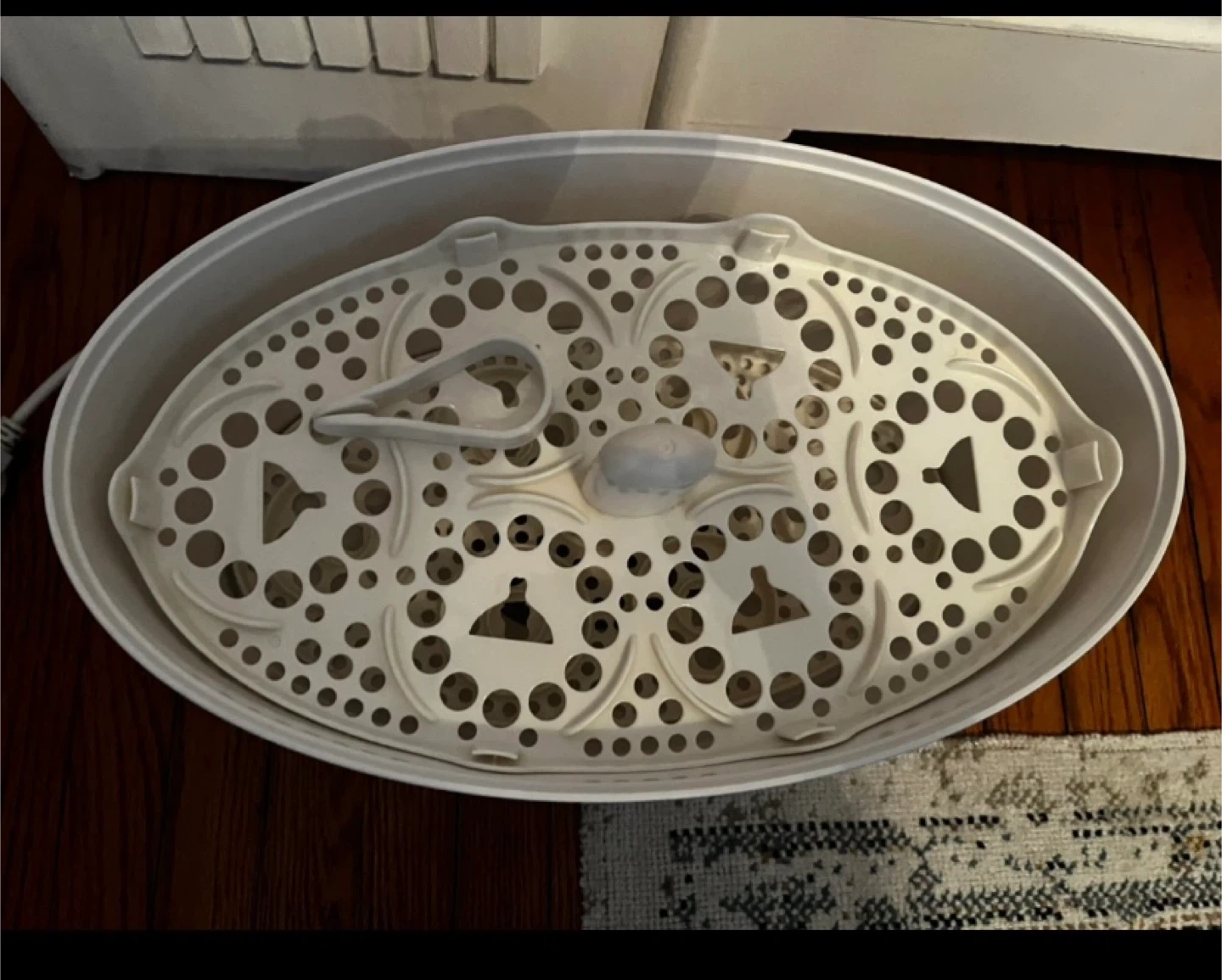 Tommee Tippee 6 baby bottle sterilizer. Great condition. Needs to be descaled. 2 tier (one for bottles and one for lids and nipples). Holds 6 bottles and lids! Comes with plastic tweezer. ***Pick up at 385 Osler street.Cash only.Asking Price $40.FIRM PRICE.Low ballers will not be answered my price is fixed. No Refunds / Exchange. If you see it posted on here it means it is still available,so please don't ask.