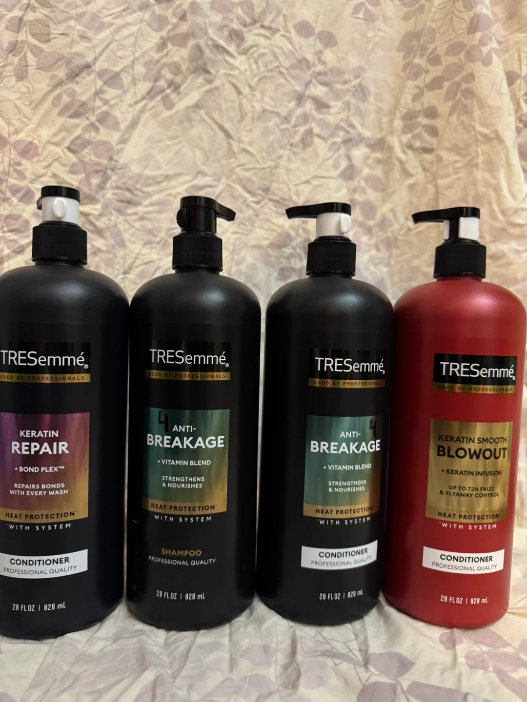 21Selling TRESemmé professional quality hair products! Available: - Keratin Repair Conditioner (28 fl oz / 828 mL) - Anti-Breakage Shampoo (28 fl oz / 828 mL) - Anti-Breakage Conditioner (28 fl oz / 828 mL) - Keratin Smooth Blowout Conditioner (28 fl oz / 828 mL) All provide heat protection with system