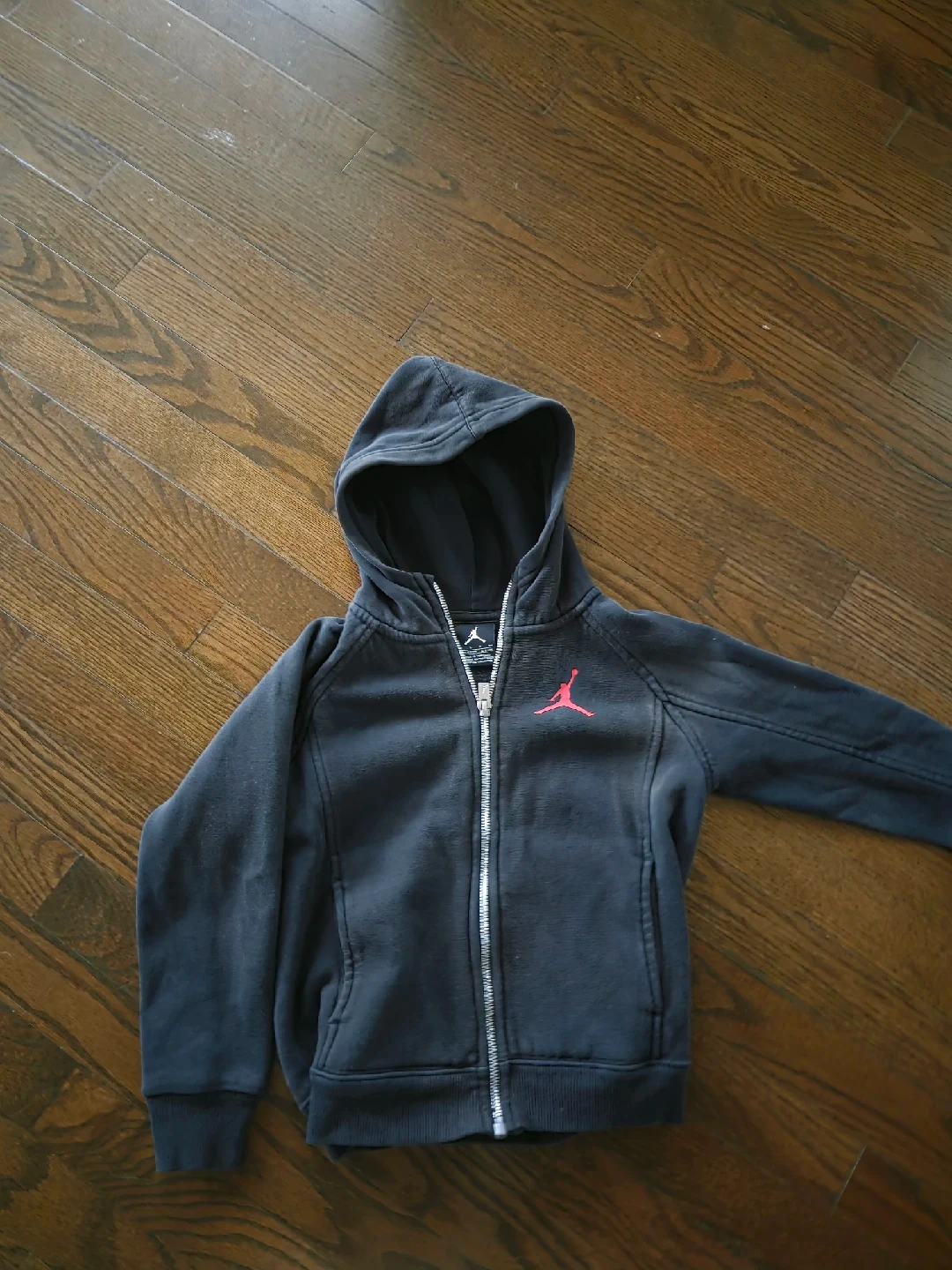 A gently used Jordan kids' full zip hoodie in size 4-5 years. It's a stylish and comfortable hoodie for your little one!