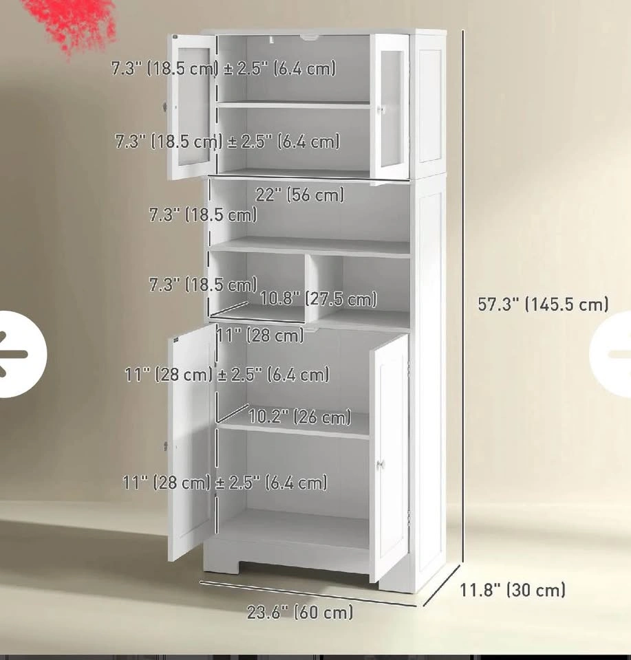 **Adjustable Shelves**: Customize each cabinet with 3 height options
