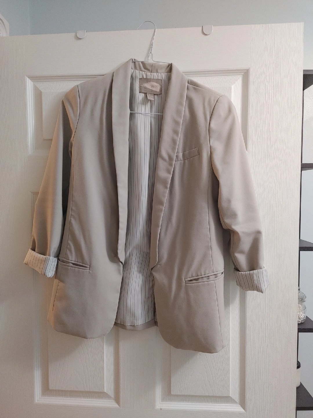 Selling a cute beige blazer from Forever 21 Contemporary! It's a size XS and in great condition. Perfect for adding a touch of style to any outfit!