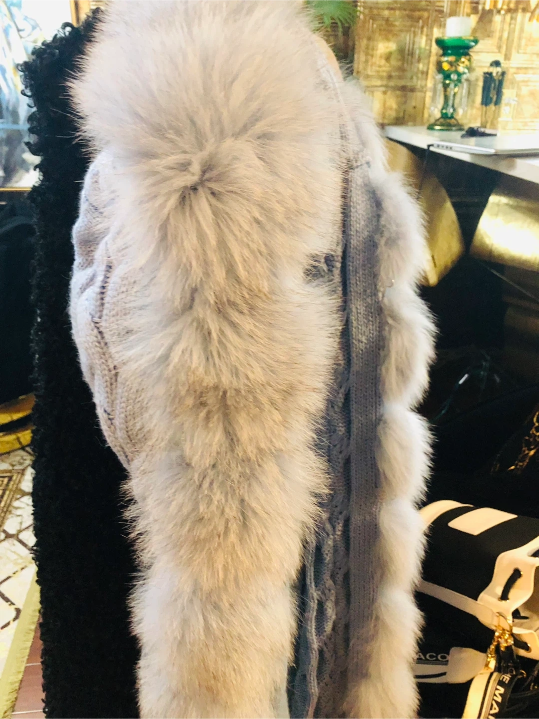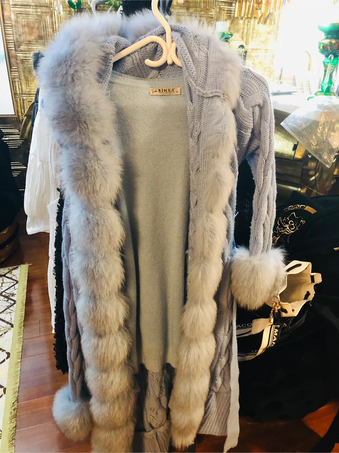 Binka Knit Cardigan with real Fur Trim L/M