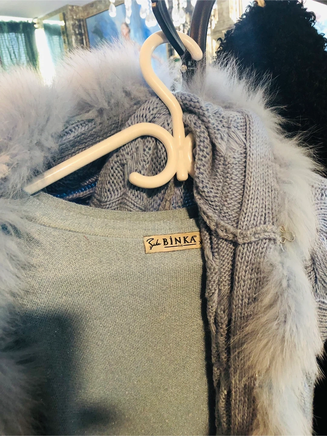 Cozy up with this lovely Binka knit cardigan! It features a stylish cable knit design and a beautiful faux fur trim. Perfect for adding a touch of elegance and warmth to any outfit