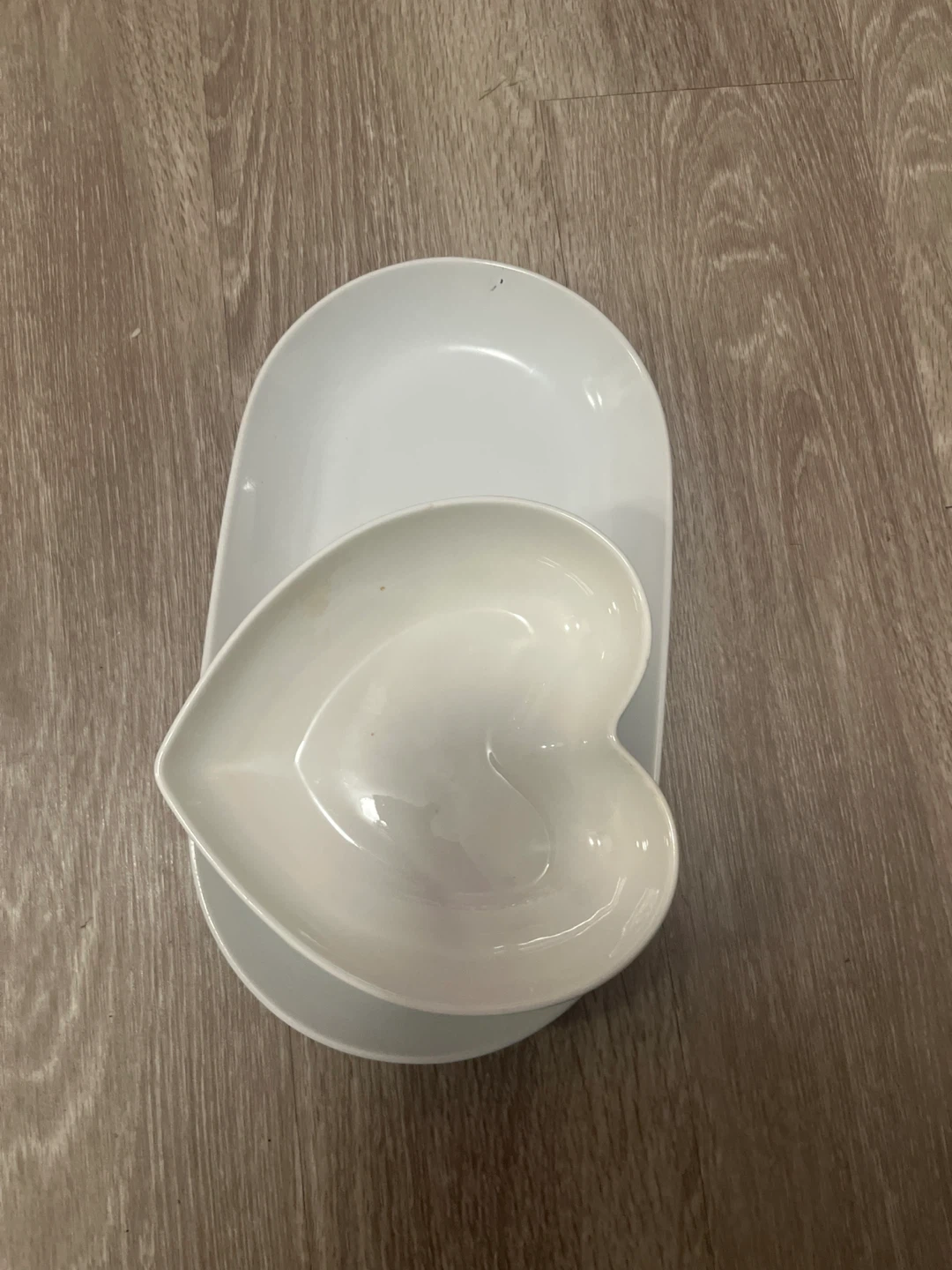105Selling two lovely white serving dishes! One is an oval shape, perfect for serving appetizers or desserts. The other is a sweet heart shape, great for candies or dips. Both are in great condition and ready to brighten up your table