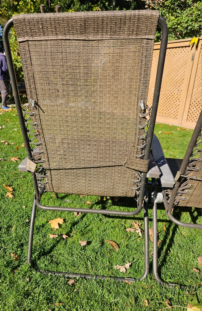 Selling a set of three zero gravity lounge chairs. They're perfect for relaxing in the backyard or on the patio. They are in good condition and ready for a new home!