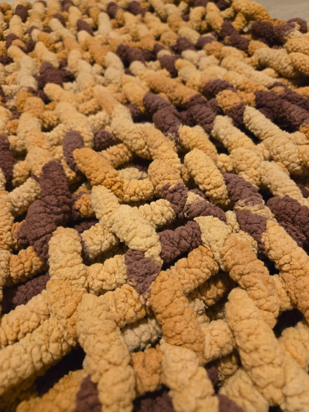 Selling a cozy chunky knit throw blanket in a mix of brown and beige tones. It's perfect for adding a warm and stylish touch to your living room or bedroom. Fits Queen size bed. delivery in nw for $10