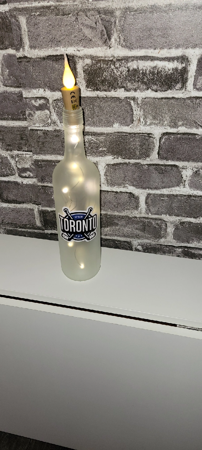 10Selling a decorative bottle with a Toronto Maple Leafs logo and fairy lights inside. It also has a flickering flame effect cork on top. Perfect for any Leafs fan!
