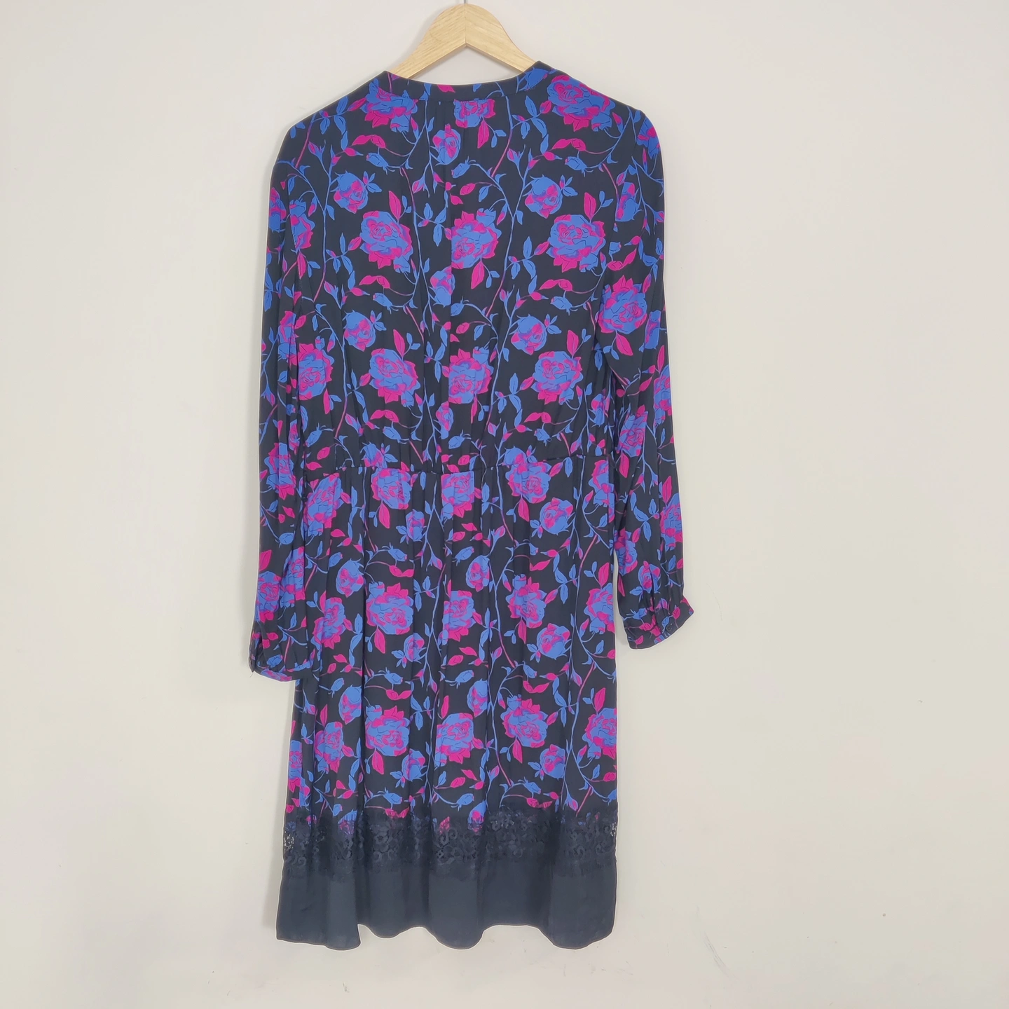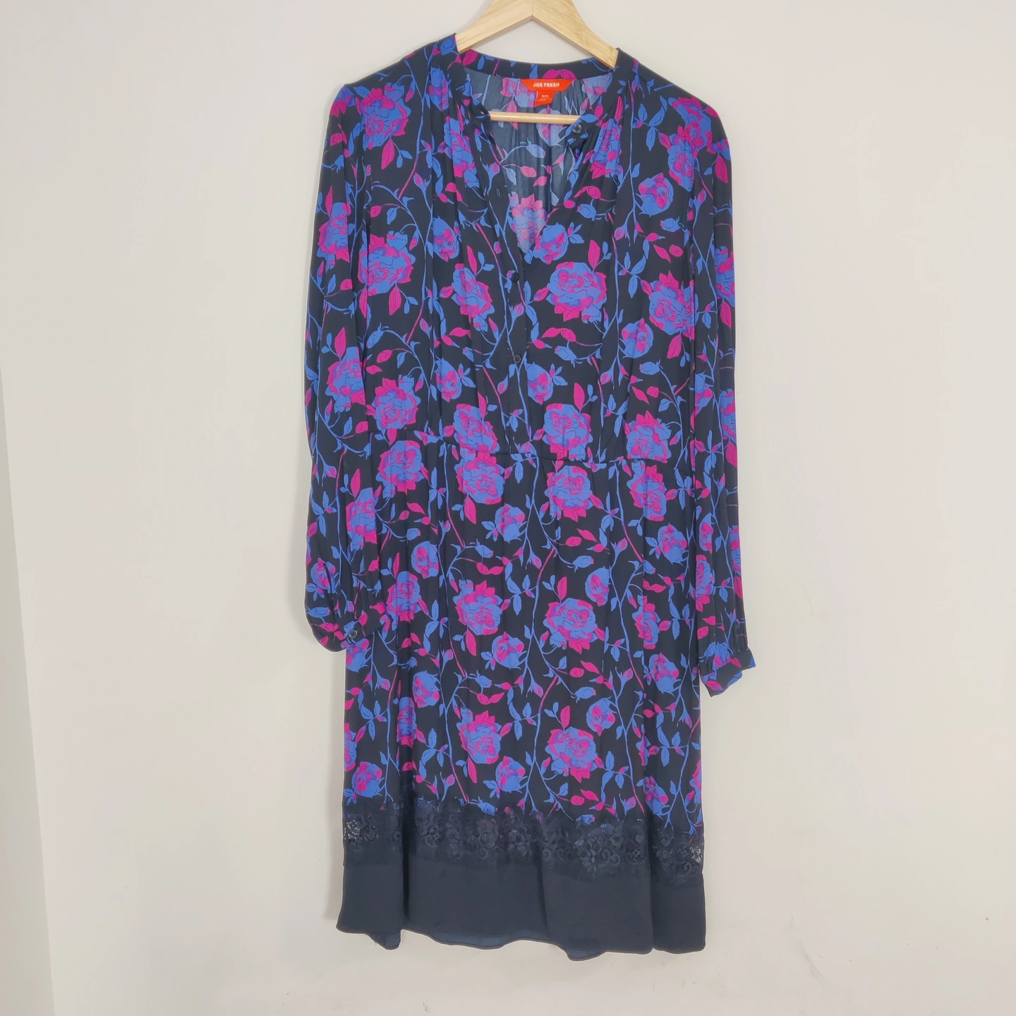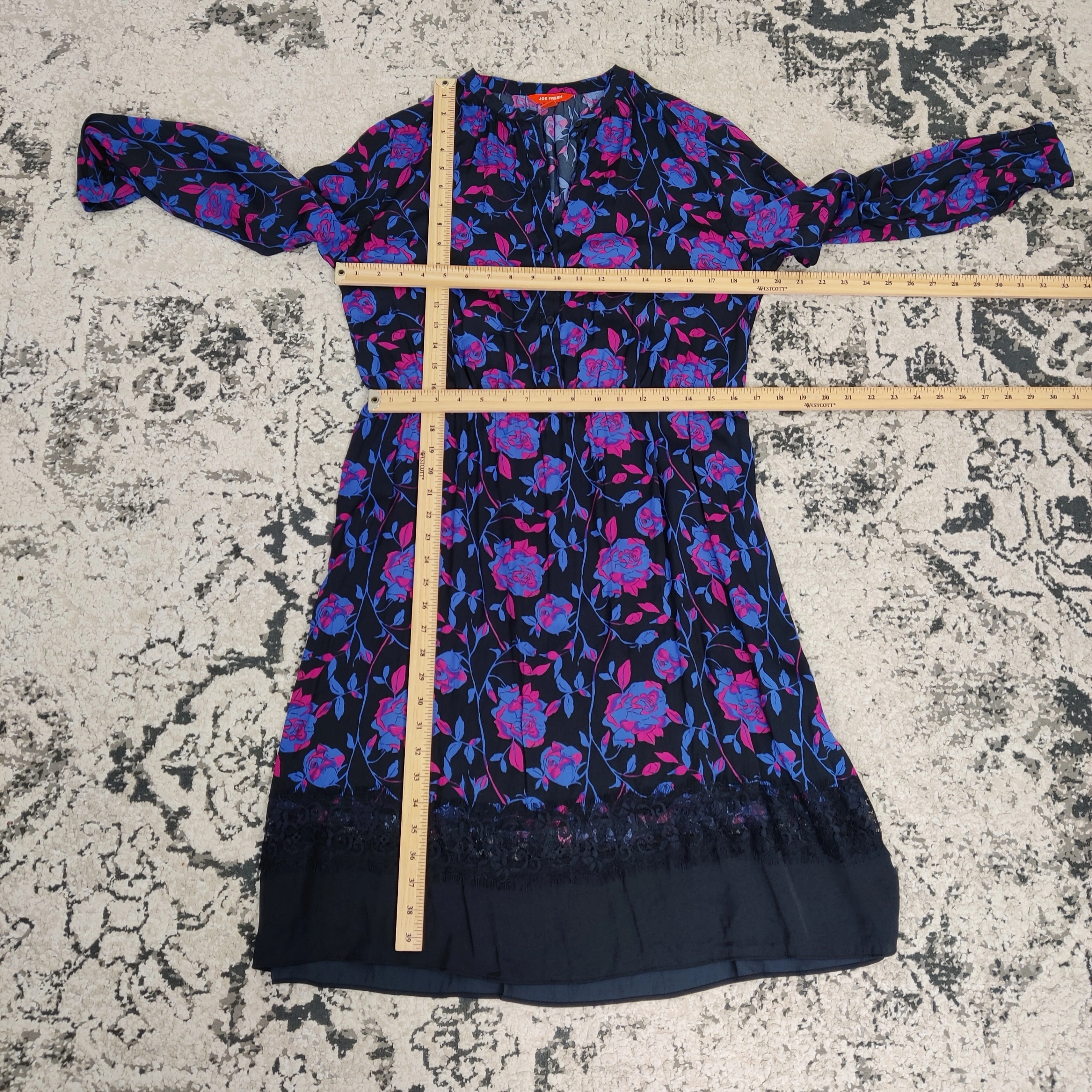 Neon Buddha Navy Blue Cotton Tunic Dress with Lace-Up Size Med
