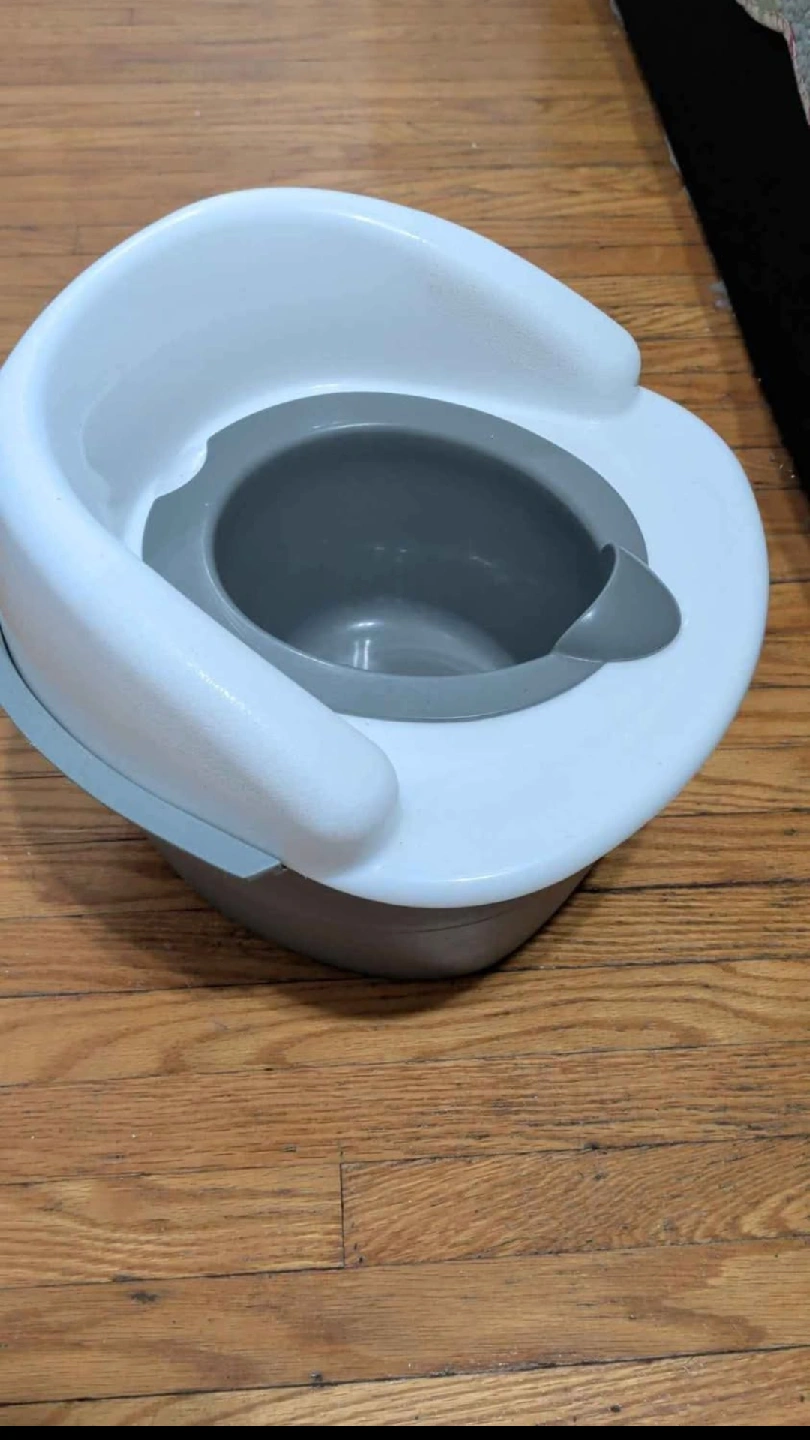 3-in-1 Potty Trainer: serves as a potty, toilet seat ring, and step stool. Used but in good condition. Perfect for toilet training. Easy to clean and sturdy