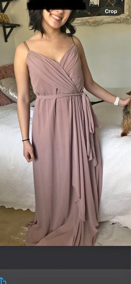 20Mauve / dusty pink bridesmaid dress, likely size 4-6. No tag, I got it second hand so I don’t know the brand either. Pick up at surrey central mall if you need to try it on. Porch pick up available as well.
