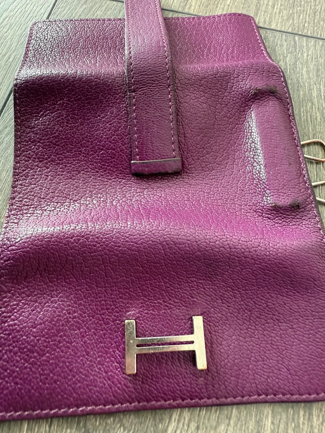 Keep your keys organized in style with this Hermès Paris key holder! It's a beautiful purple leather and made in France