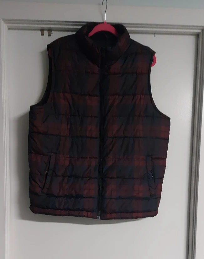 Here's a Gap puffer vest in a size large! It's in great condition and ready to keep you warm. The vest features a classic puffer design with a stylish plaid pattern. Made in Vietnam