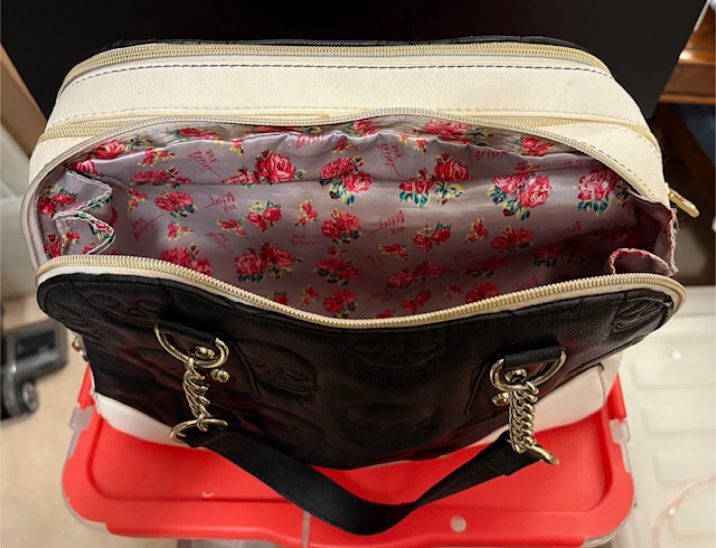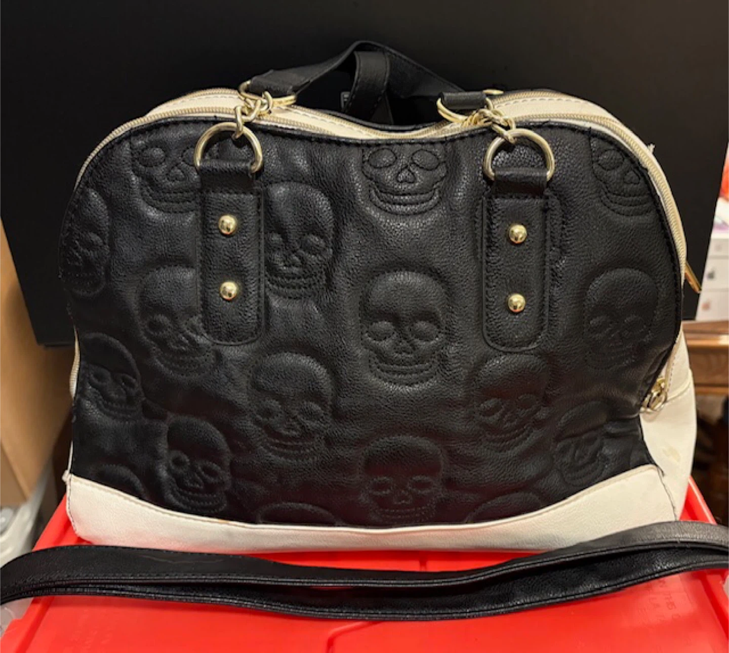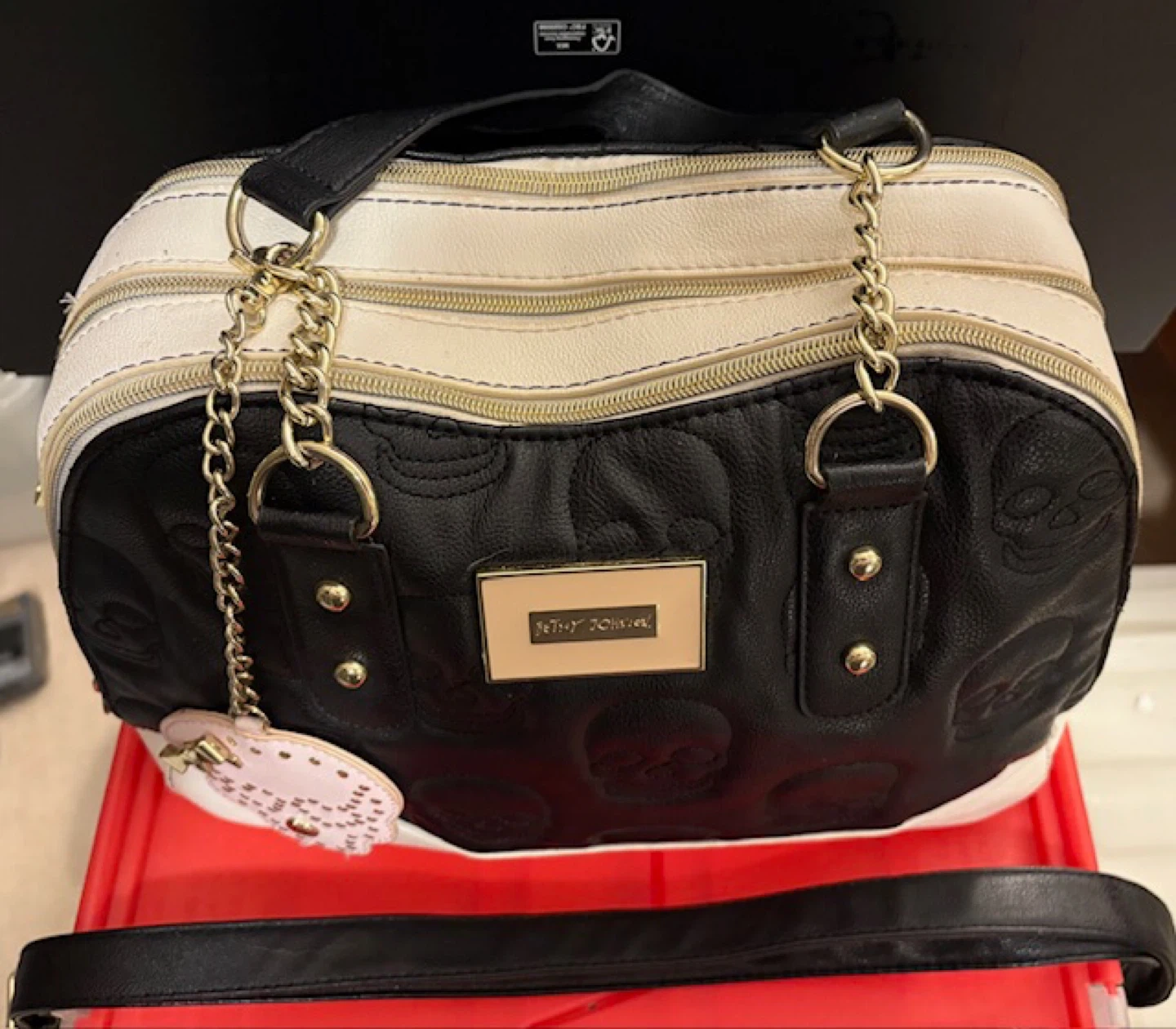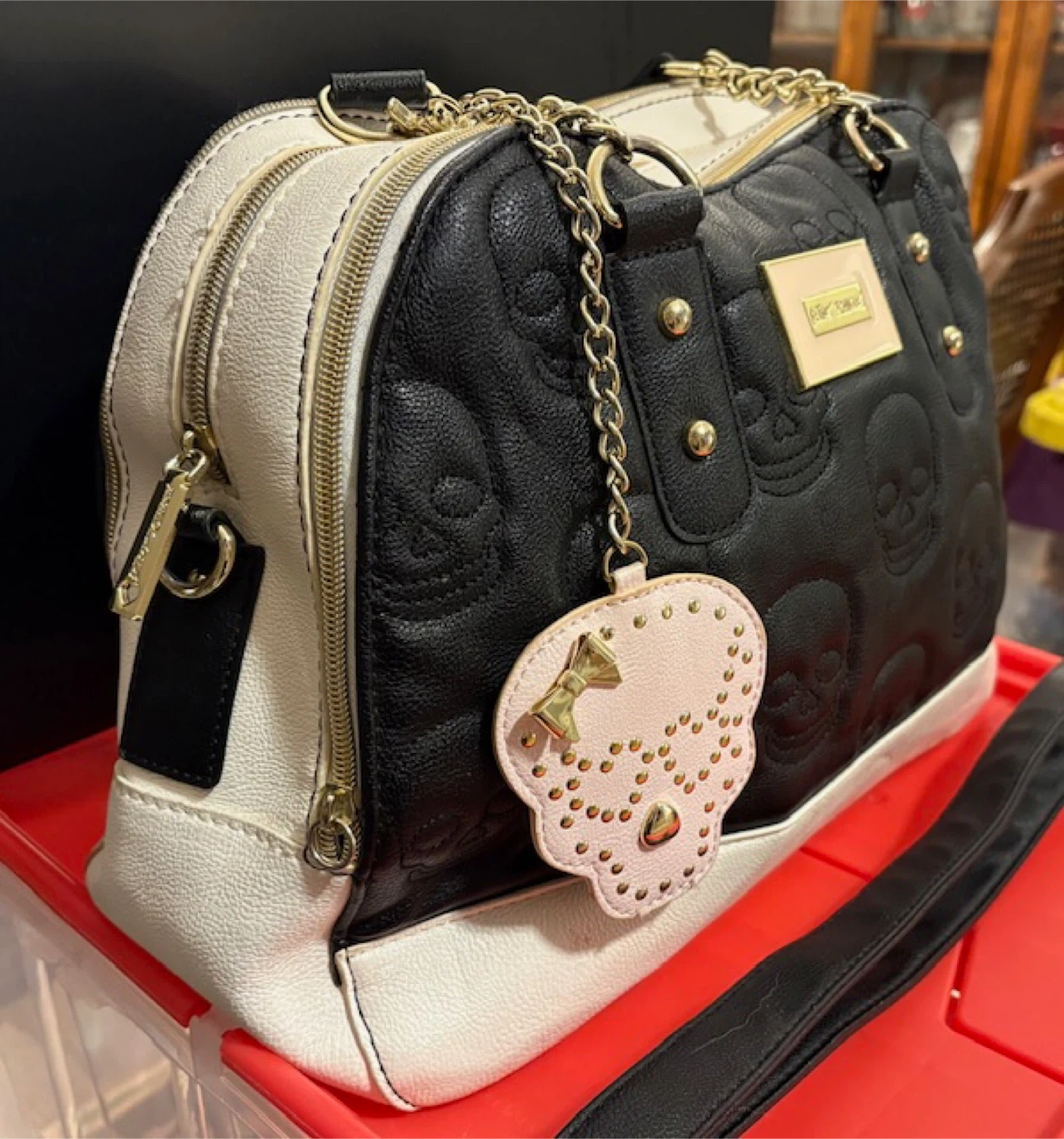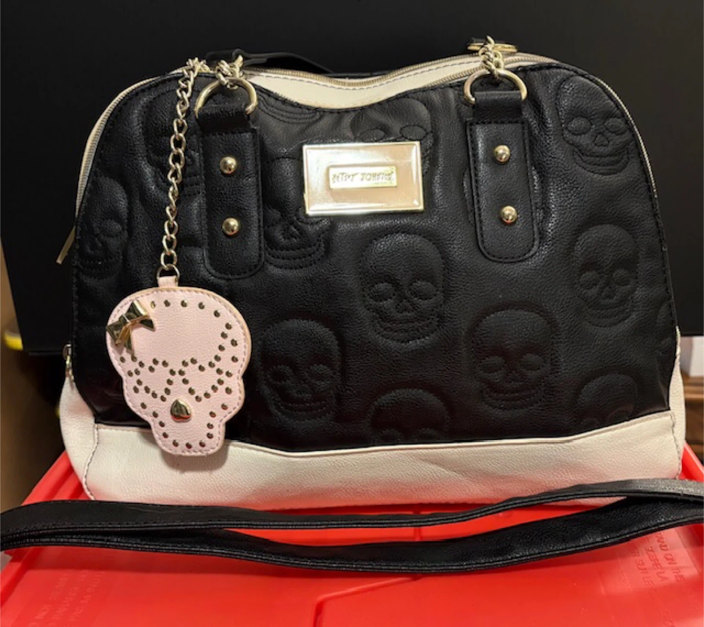 🤩Betsey Johnson Black & White Skull Satchel w/Strap