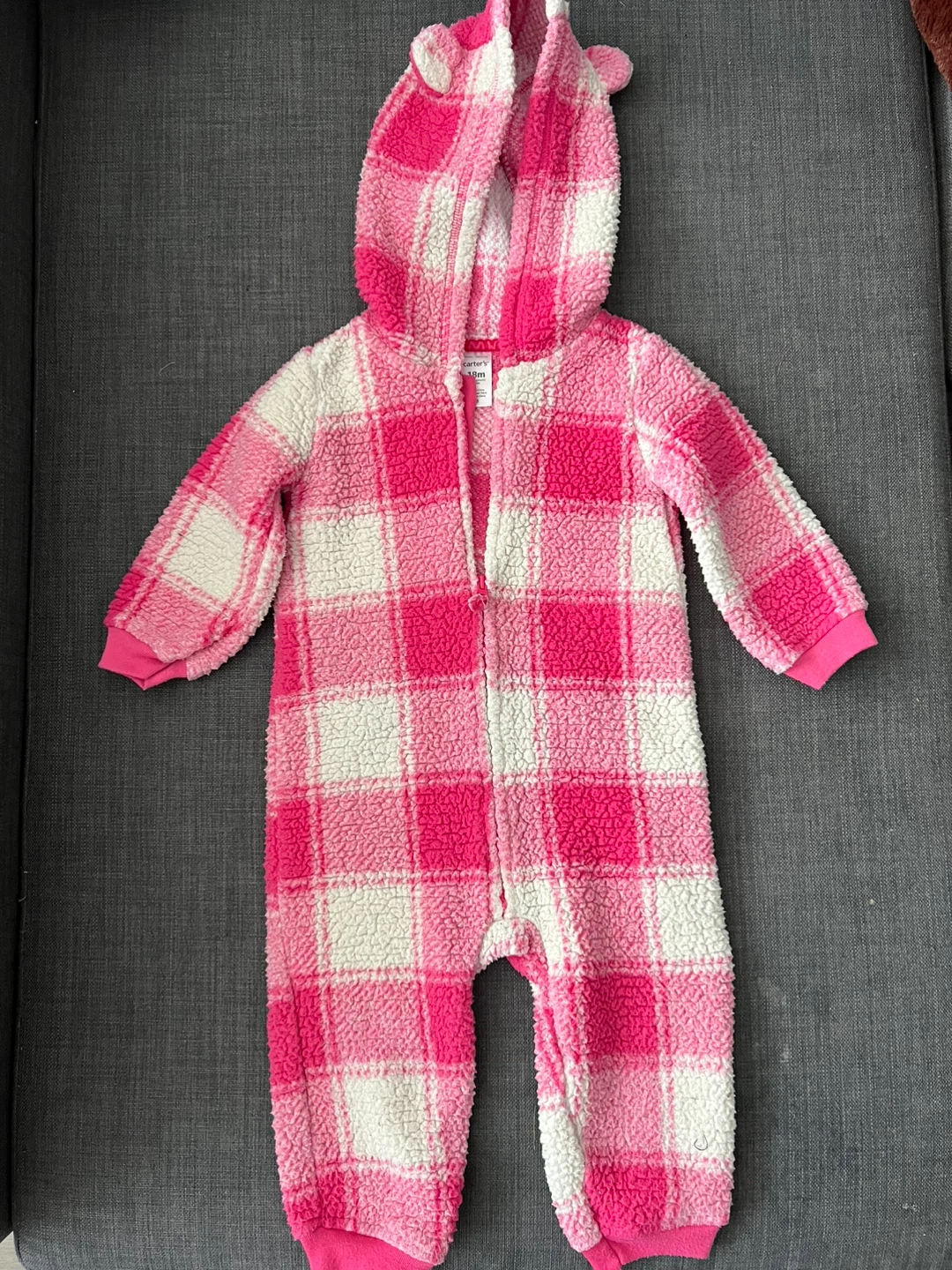 Carter's 18M Pink Plaid Fleece Bunting Onesie