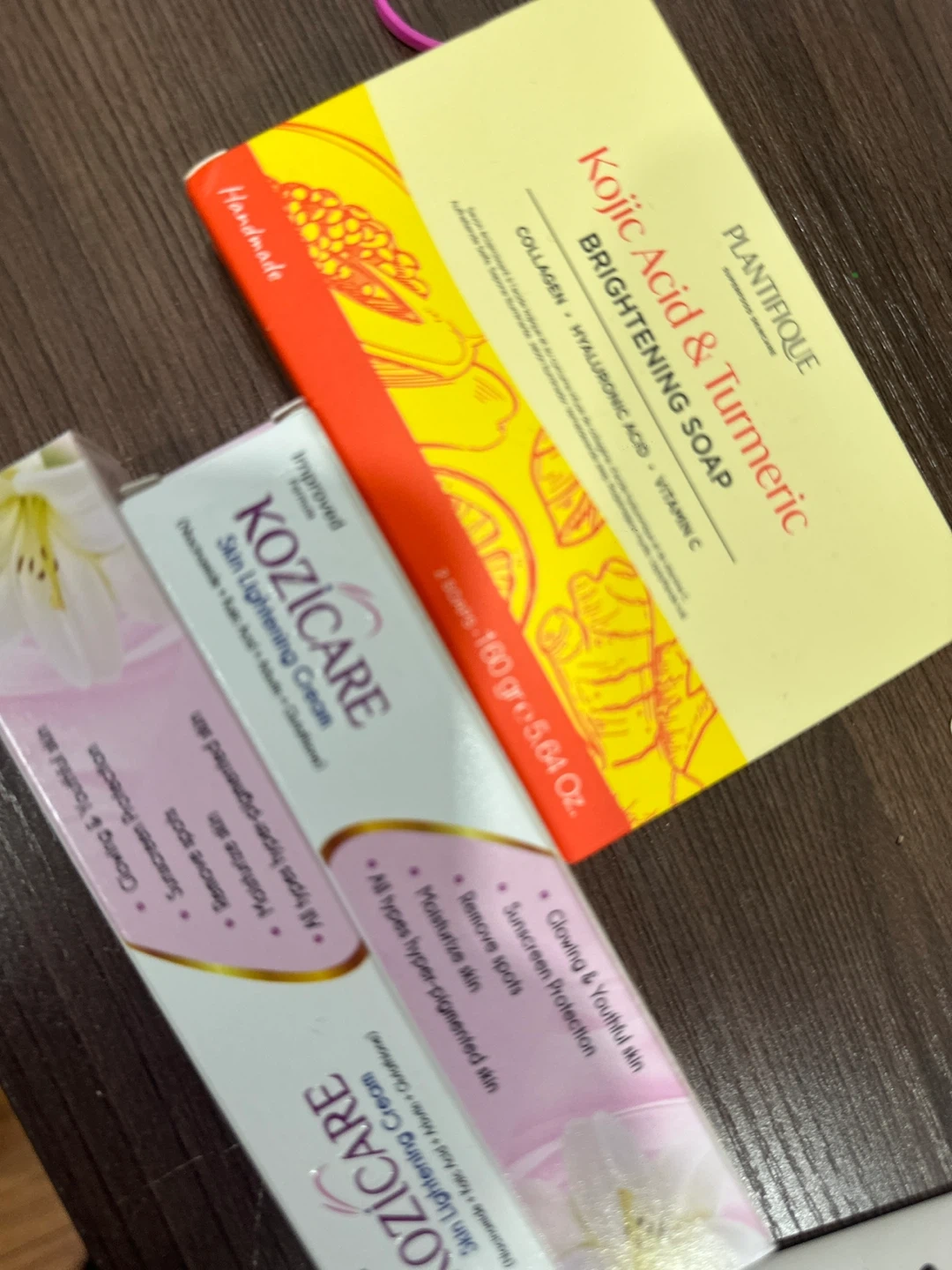 95I'm selling Kozicare Skin Lightening Cream and Plantifique Kojic Acid & Turmeric Brightening Soap. The soap contains collagen, hyaluronic acid, and vitamin C. suitable for all types of hyper-pigmented skin. One cream is used and half available
