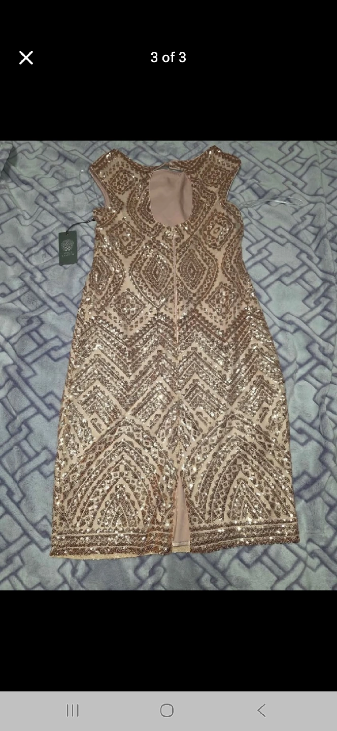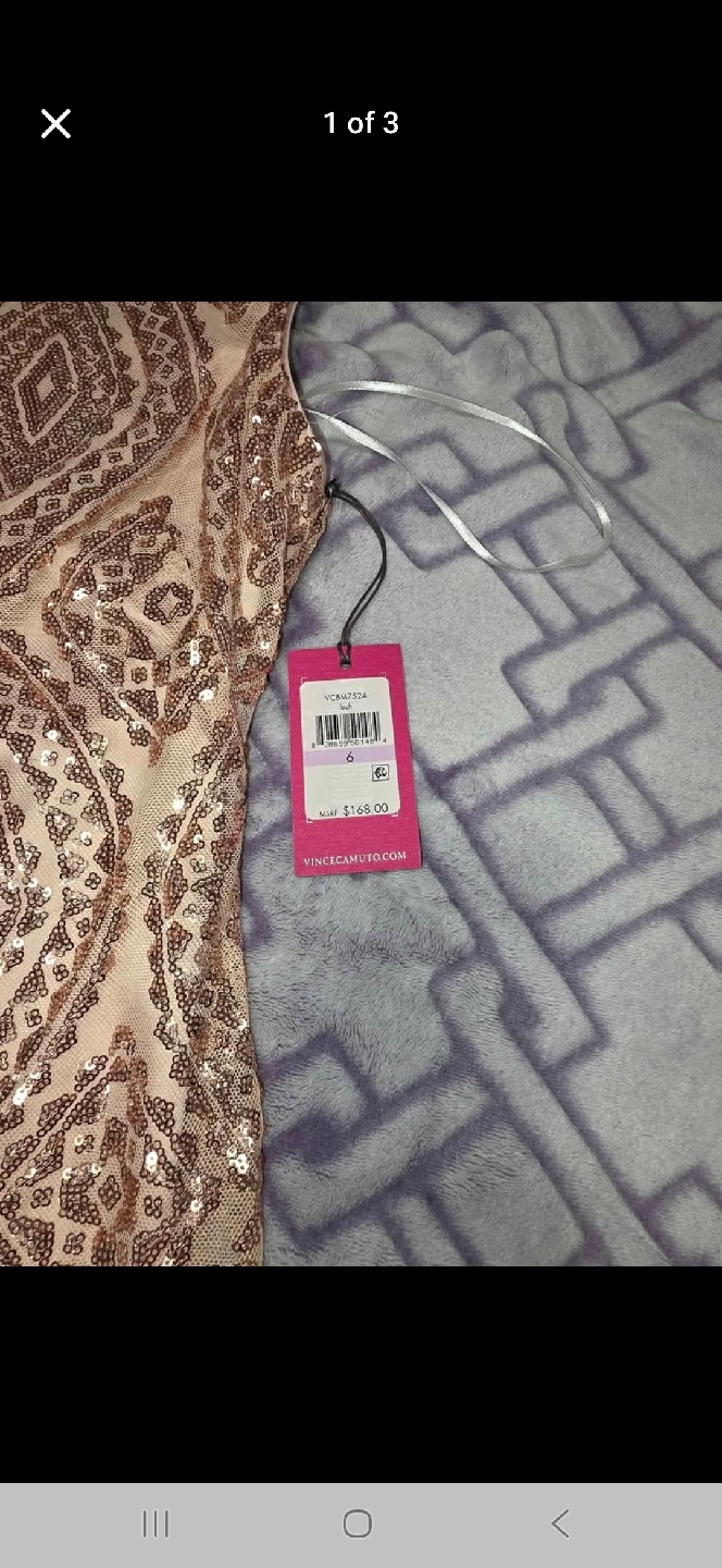 60Selling a beautiful Vince Camuto sequin dress in size 6! It's a stunning piece perfect for any special occasion. The dress features intricate sequin detailing and a flattering silhouette. Originally bought for $168.00