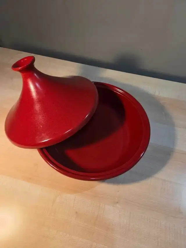 26This Emile Henry tagine is the perfect dish for cooking flavourful stews and tagines, it measures 12.5 inches in diameter and has a 2.5 quart capacity. This tagine is in excellent condition. Here are some additional details: * Brand: Emile Henry * Material: Ceramic * Colour: Red * Capacity: 2.5 quarts Cooking with this tagine is like taking a mini-vacation to Morocco, without the jet lag!