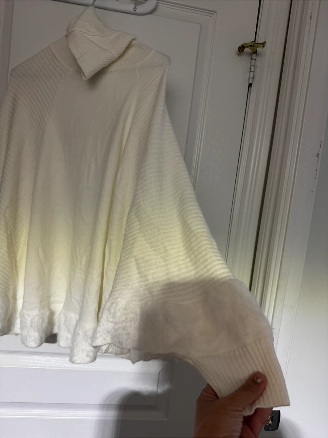 555Cozy up with this knit poncho-style sweater! It's perfect for adding a layer of warmth on chilly days. The soft knit material feels great against the skin, and the unique poncho design adds a touch of flair to any outfit Free size $20 Yonge and finch area